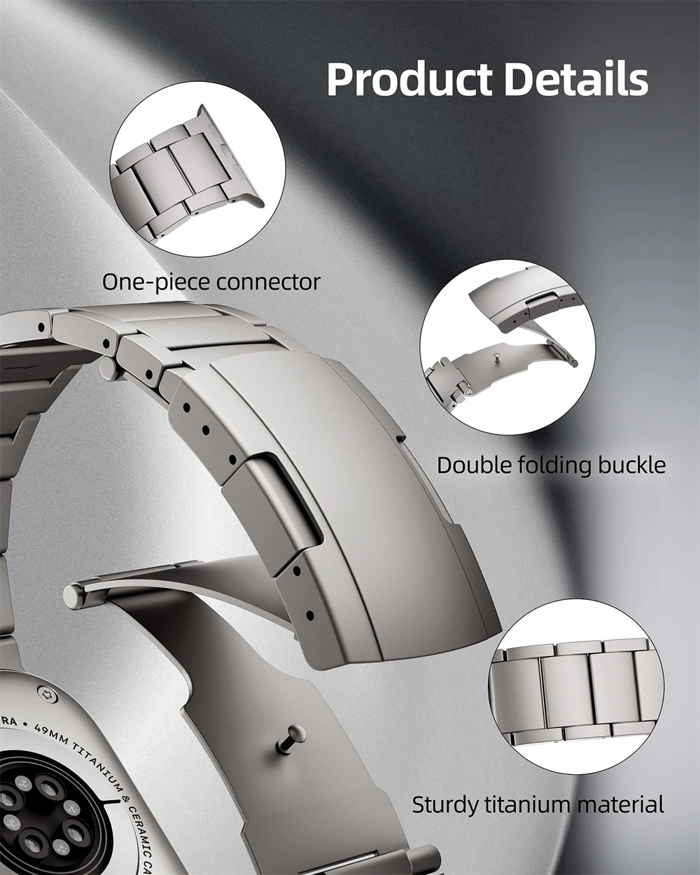 Titanio premium, diseño exquisito: hecha de una aleación de titanio superior, nuestra correa para Apple Watch Ultra 3 Apple Watch Ultra 2 ofrece una resistencia excepcional, comodidad liviana y durabilidad resistente a la corrosión.Mientras que el diseño hipoalergénico y resistente al sudor se desliza suavemente contra la piel, sin irritación, solo sofisticación refinada para su muñeca.