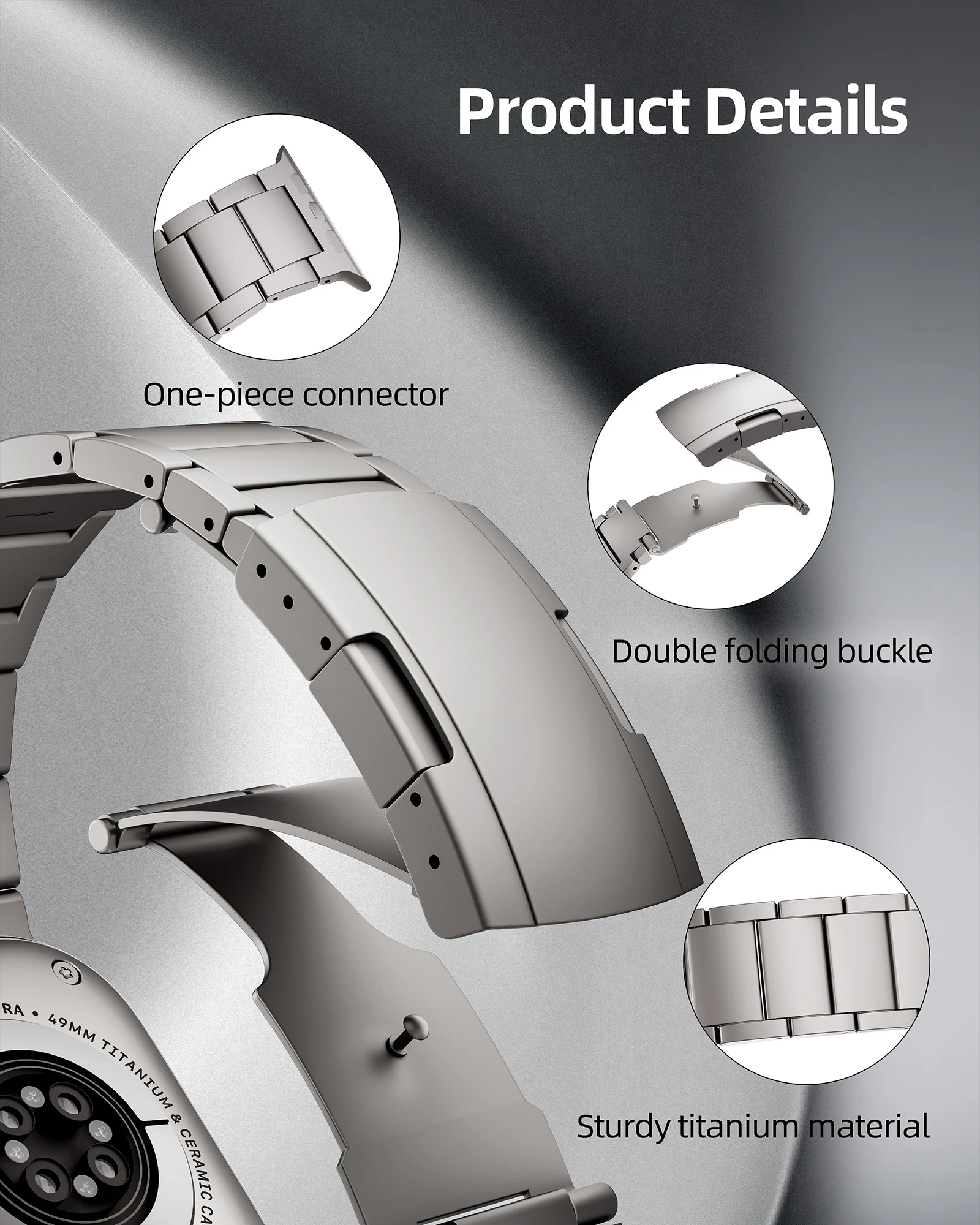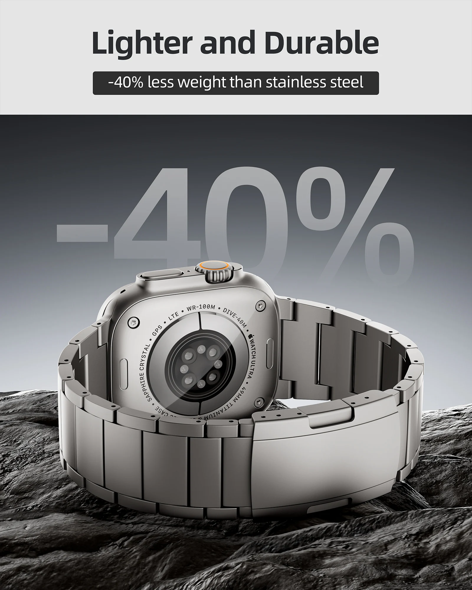 Diseñado para usted: Diseñado para integrarse perfectamente con Apple Watch Ultra 3 (49 mm), Apple Watch Ultra 2 (49 mm), Ultra (49 mm) y Serie 11 de 46 mm, Serie 10 de 46 mm, nuestra correa de titanio para Apple Watch presenta una conexión sin espacios para un ajuste seguro y al ras.Combina perfectamente con el Watch ULTRA sin espacio entre la interfaz de la correa y la esfera del reloj.También compatible con Apple Watch SE/SE 2/SE 3 de 44 mm, serie 6/5/4 de 44 m, Apple Watch S9/8/7 de 45 mm y S3/2/1 de 42 mm.