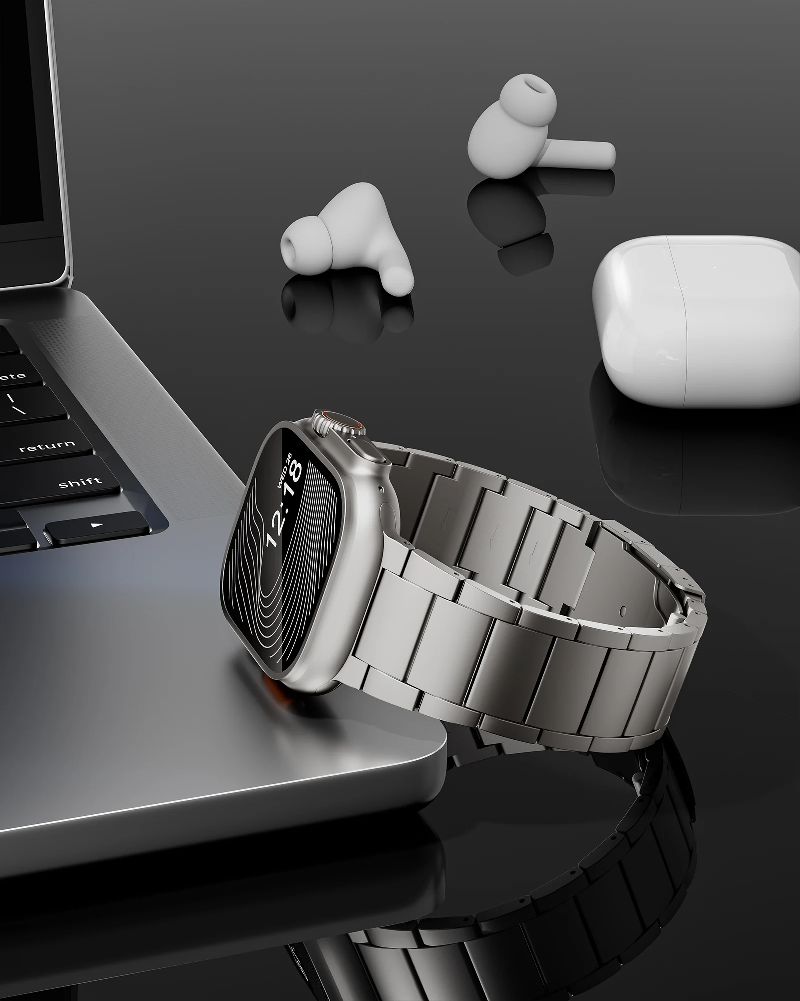 Elección de regalo bien pensada: combinando elegancia y practicidad, nuestra correa de titanio para Apple Watch, disponible en varios tamaños, es el regalo perfecto para los entusiastas de Apple Watch.