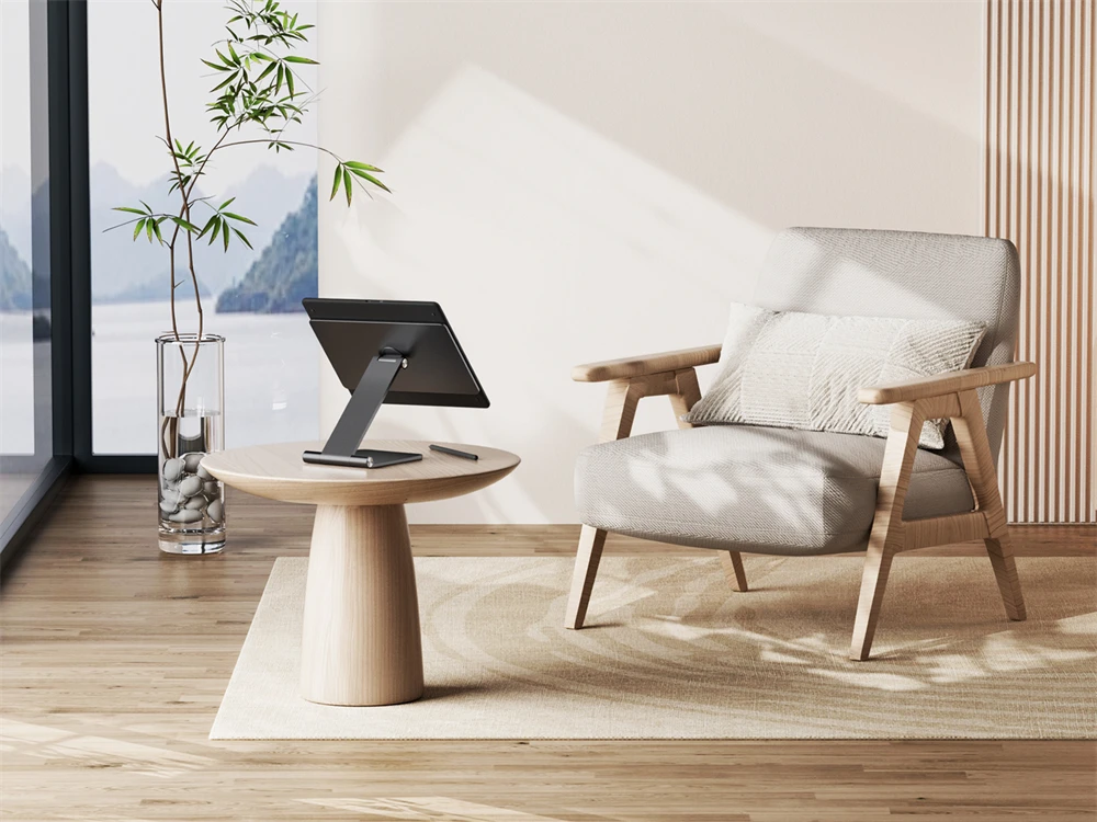 Ajustabilidad fácil de usar:360° El diseño de rotación giratoria ofrece visualización de retratos y paisajes.El brazo de soporte se puede inclinar fácilmente para múltiples ángulos de visión para satisfacer sus necesidades.