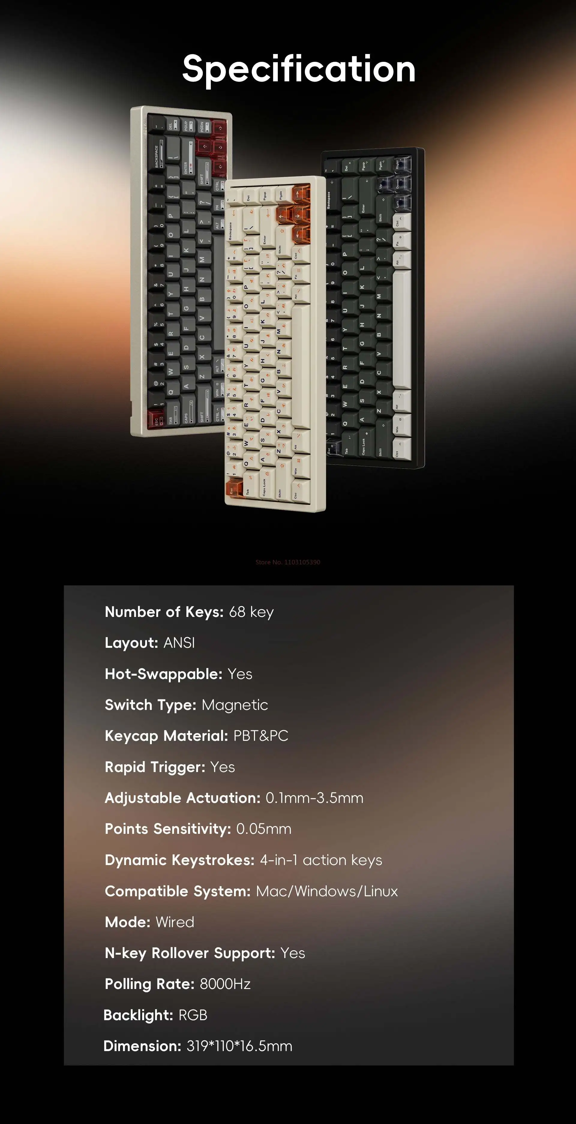 Luminkey Magger68 Plus-teclados mecánicos con interruptor magnético, teclados con cable de bajo retardo 8k, teclado para juegos con gatillo rápido personalizado