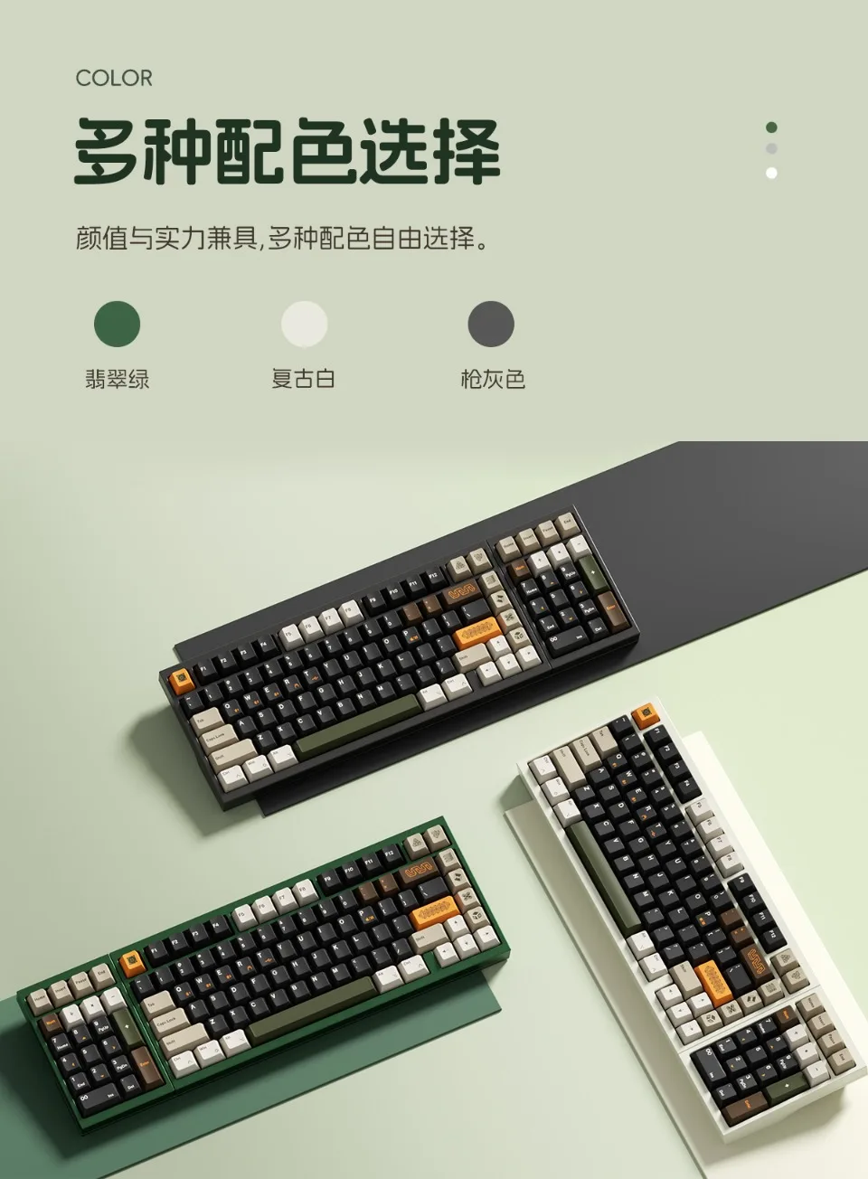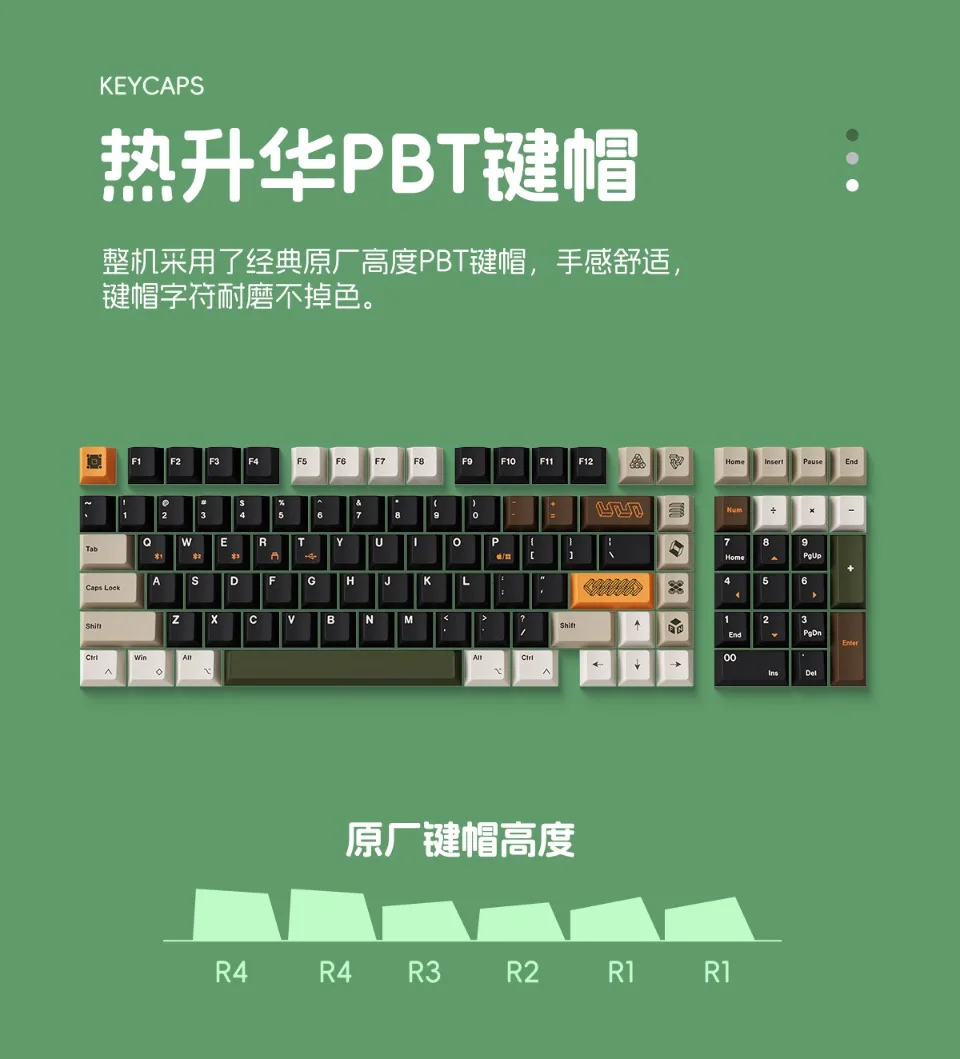 Toda la máquina adopta las teclas PBT clásicas de sublimación térmica Cherry Profile, que se sienten cómodas en la mano, y los caracteres de las teclas son resistentes al desgaste y no pierden color.