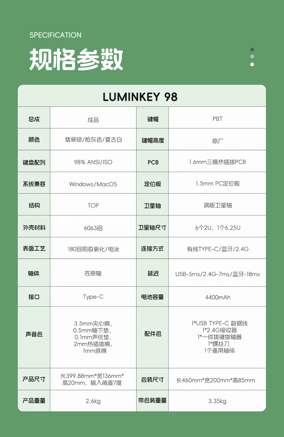 LUMINKEY98 Teclado mecánico Inalámbrico Tri-modo Junta Hot-Swap PBT Keycap Personalizado 98% CNC Aluminio Teclado para juegos de oficina Regalo