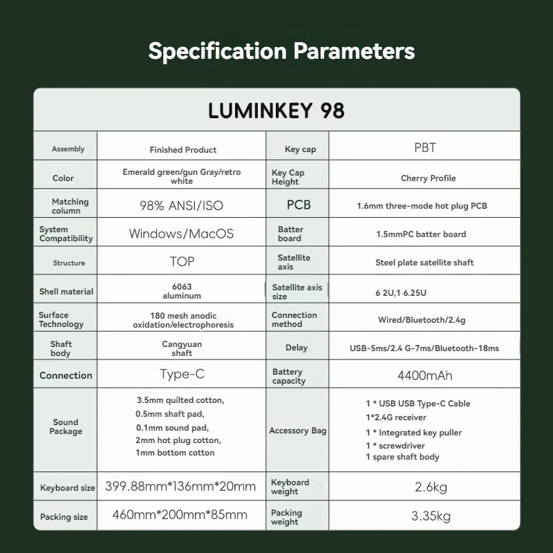LUMINKEY98 Teclado mecánico Inalámbrico Tri-modo Junta Hot-Swap PBT Keycap Personalizado 98% CNC Aluminio Teclado para juegos de oficina Regalo