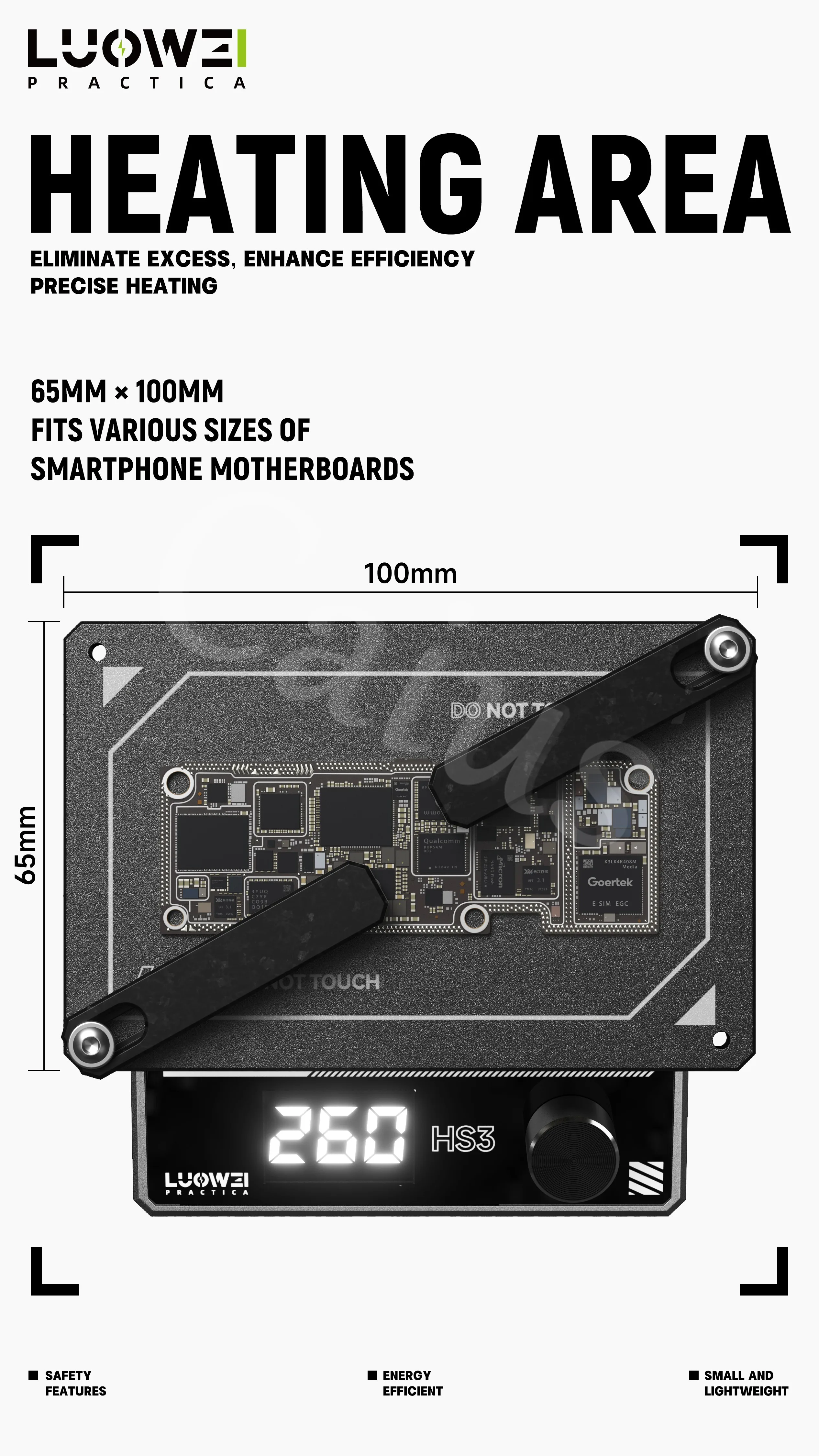 LUOWEI HS3 Estación de precalentamiento Plataforma termostática de precalentamiento en capas para Android/IPhoneX-16Pro Max Herramienta de reparación de placa base Limpiador de chips en capas PCB