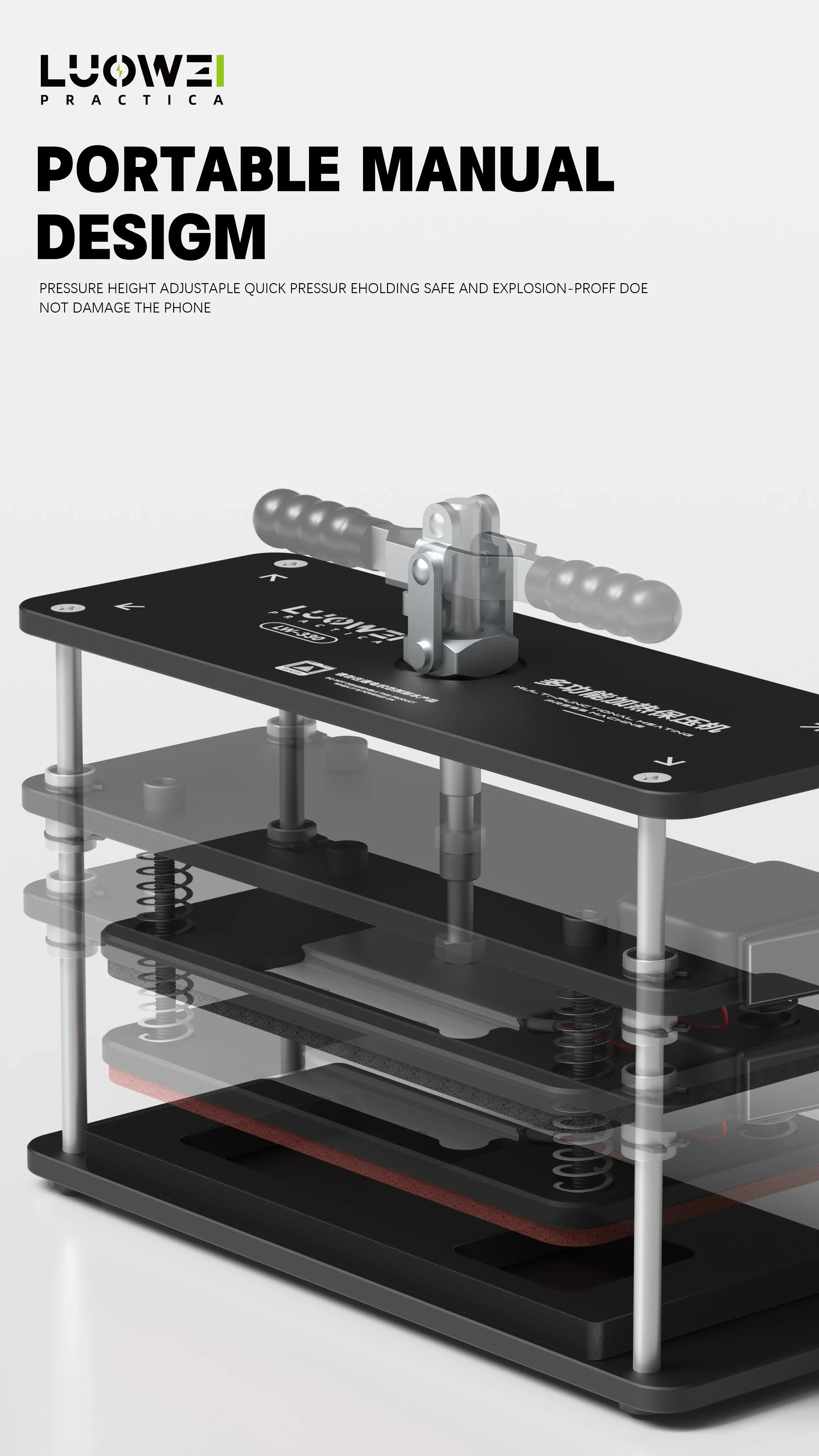 LUOWEI LW-330 Protector de calefacción Universal para reparación de teléfonos móviles soporte de prensa de calor cubierta trasera herramienta de retención de presión de calefacción