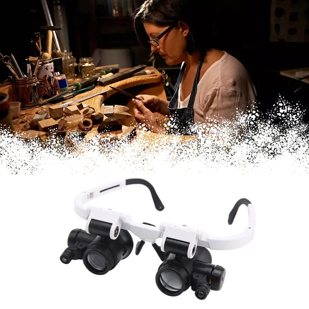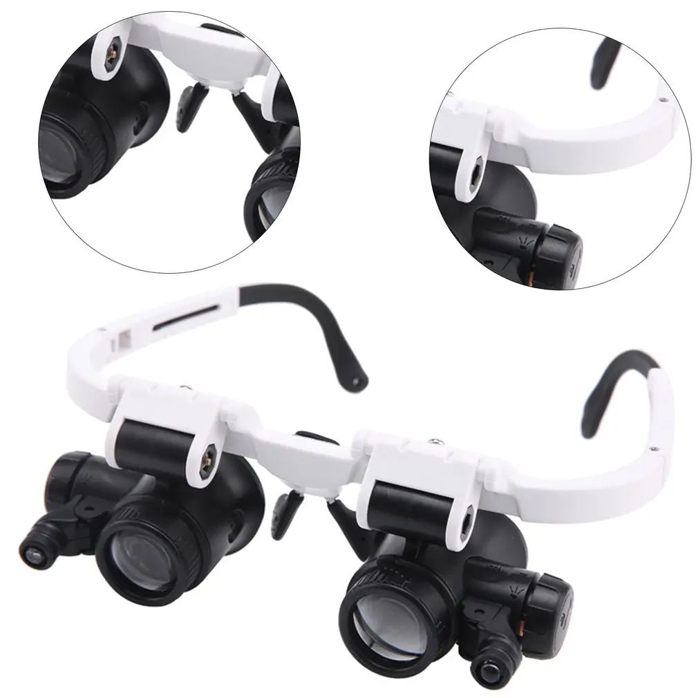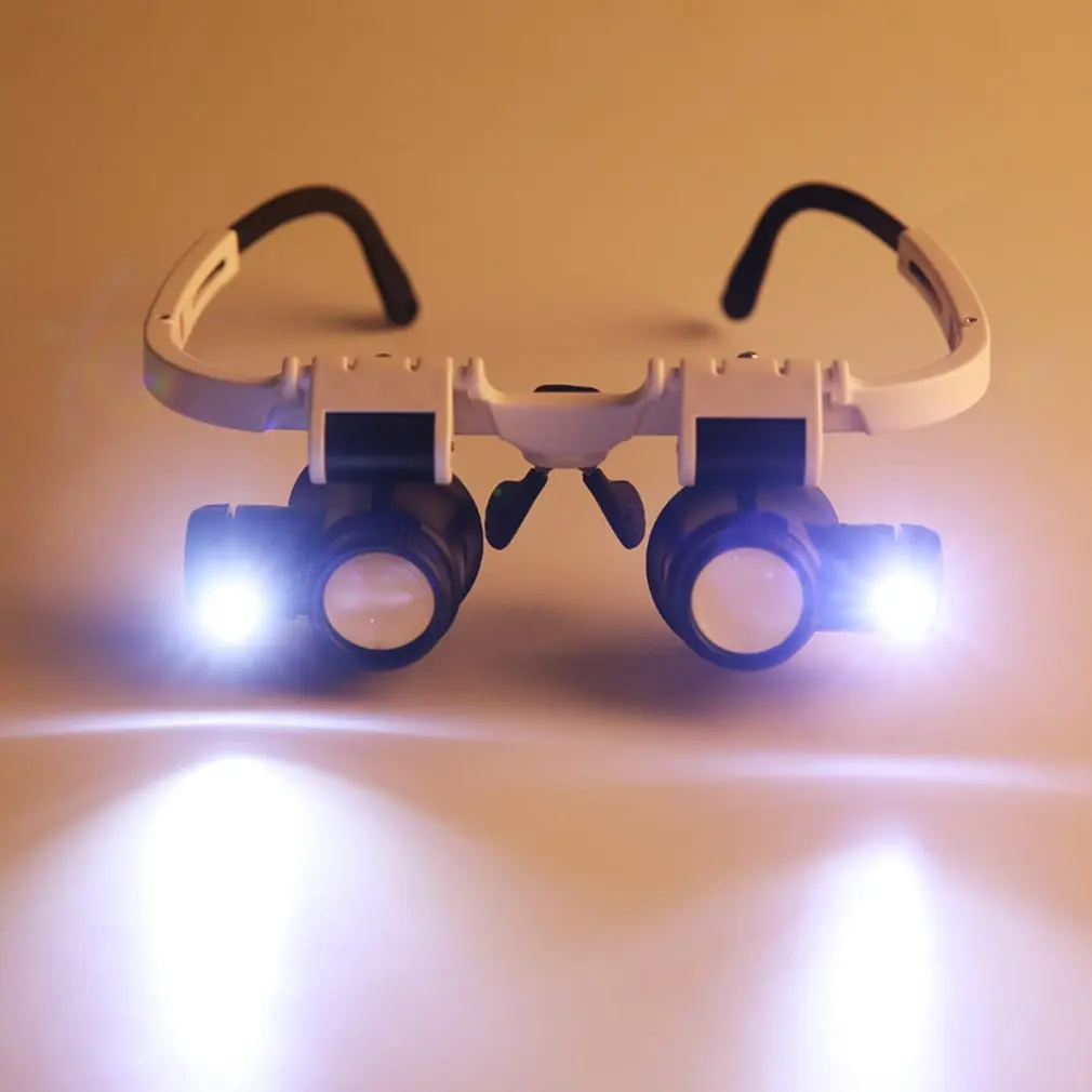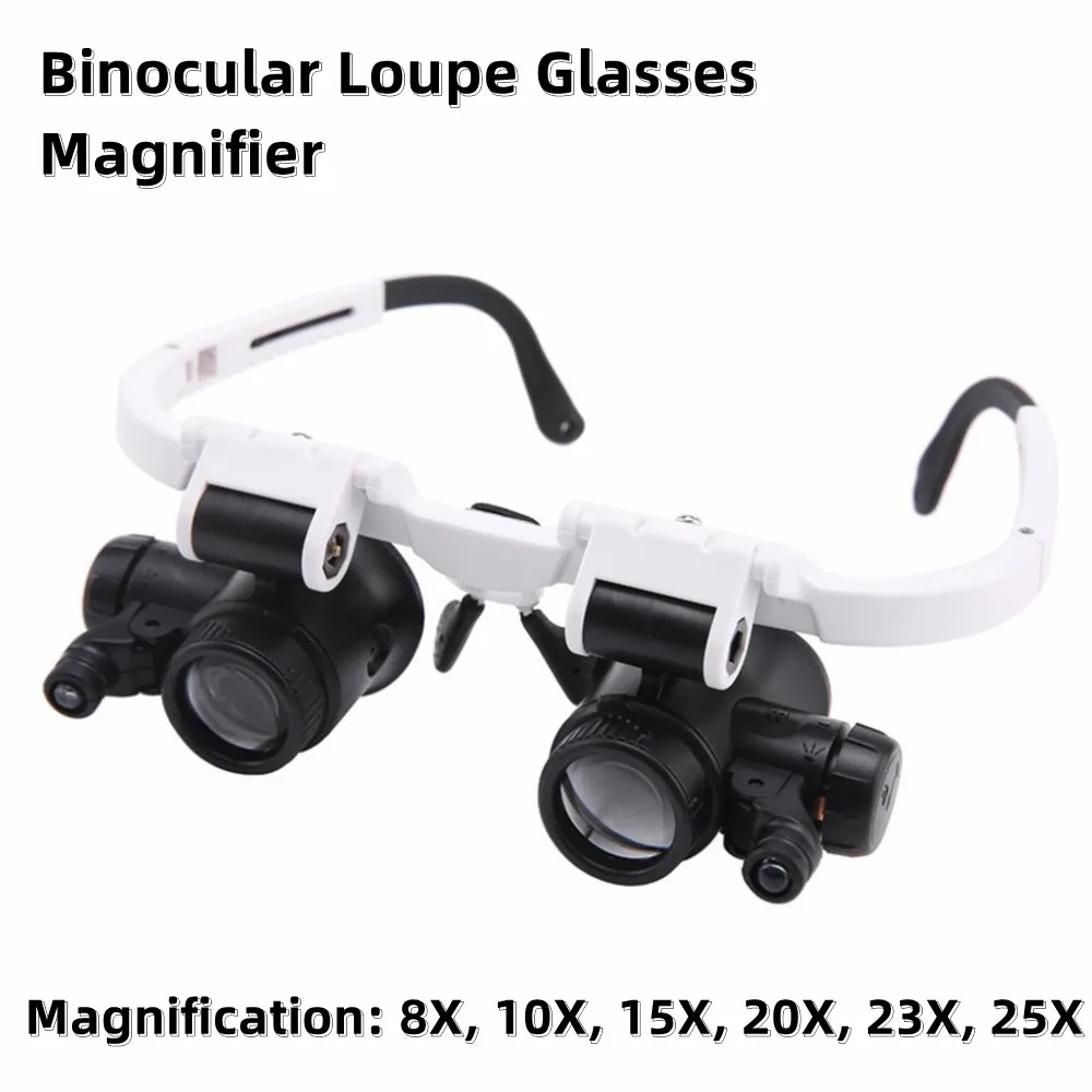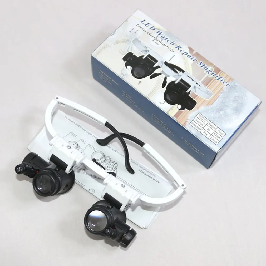 Comprar Lupa con lupa de 8x 15x 23x, gafas iluminadoras montadas en la cabeza, microscopio de reparación de diadema, lámpara LED, lupa