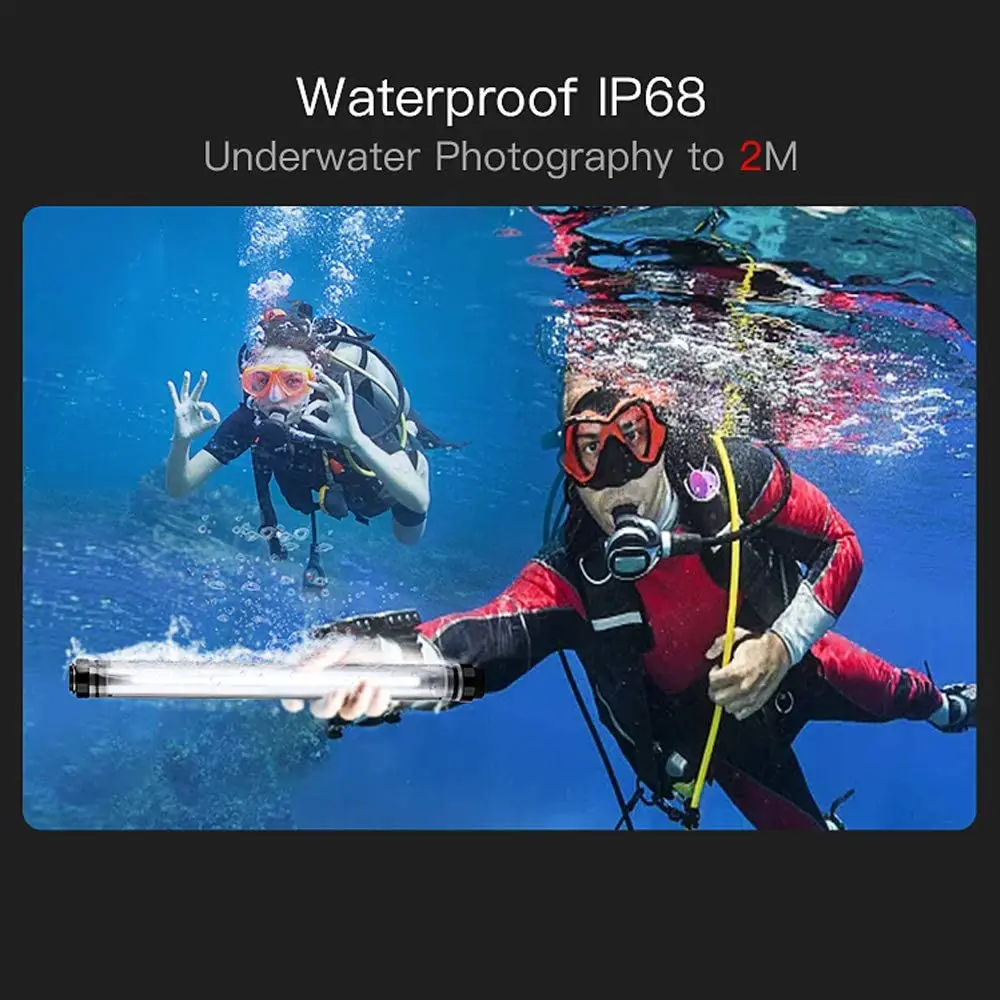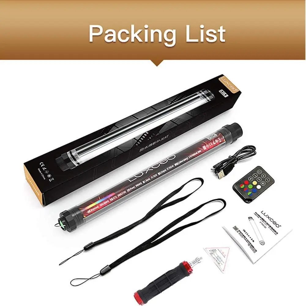 Descripción del productoLUXCEO P7RGB Luz de vídeo LED portátil impermeable, 3000K / 5750K, 8 colores emisores, 4 efectos de iluminación de escenas, CRI≥95, función de banco de energía, atenuación continua, con control remoto y empuñadura pergear1 [Varios modos de iluminación] Cuenta con atenuación sin pasos para luz blanca, modo de cambio de color RGB, 4 modos de iluminación de escena, modo SOS y 8 colores emisores disponibles.2 [Clasificación de impermeabilidad IP68] La clasificación profesional de impermeabilidad IP68 hace que pueda funcionar bajo el agua a 2 metros y es ideal para fotografía y fotografía subacuática.3 [Reproducción de color precisa] 144 piezas de perlas de luz LED SMD, CRI≥95 aseguran colores naturales y prolijos para transmisión de video, fotografía, producción de televisión y realización de películas en estudio.4 [Batería de alta capacidad con función de banco de energía] Con alta capacidad de batería de 10400 Mah, puede funcionar continuamente 4,5 horas en el modo blanco más brillante.No es solo una luz de vídeo LED para fotografía, sino también un banco de energía para cargar dispositivos inteligentes.5[Varios métodos de fijación] P7RGB se puede operar a través de los botones en el mango o el control remoto para su comodidad.Con la tuerca de 1/4′′ en el extremo de la luz, se puede instalar en el trípode.Colgarlo con el cordón incluido o adsorberlo en una superficie metálica utilizando el clip magnético (se vende por separado).Características:Ultraportátil4 modos de iluminación: RGB/Flash/Advertencia roja y azul/Iluminación blancaLuz de atenuación continuaRecargable por USB (batería incorporada)IP68 resistente al agua (bajo el agua 2 metros)Función de banco de energíaControl remotoEspecificación:Lúmenes: 1000LM (máx.), Potencia: 8W (máx.)Batería: 3,7 V 10400 mAhPuerto de carga: Micro USBColor de emisión: 8 colores, temperatura de color: 3000K / 5750KÍndice de reproducción cromática: Ra 95Voltaje de funcionamiento: 5V/2,4ATamaño: 400*36*36mm