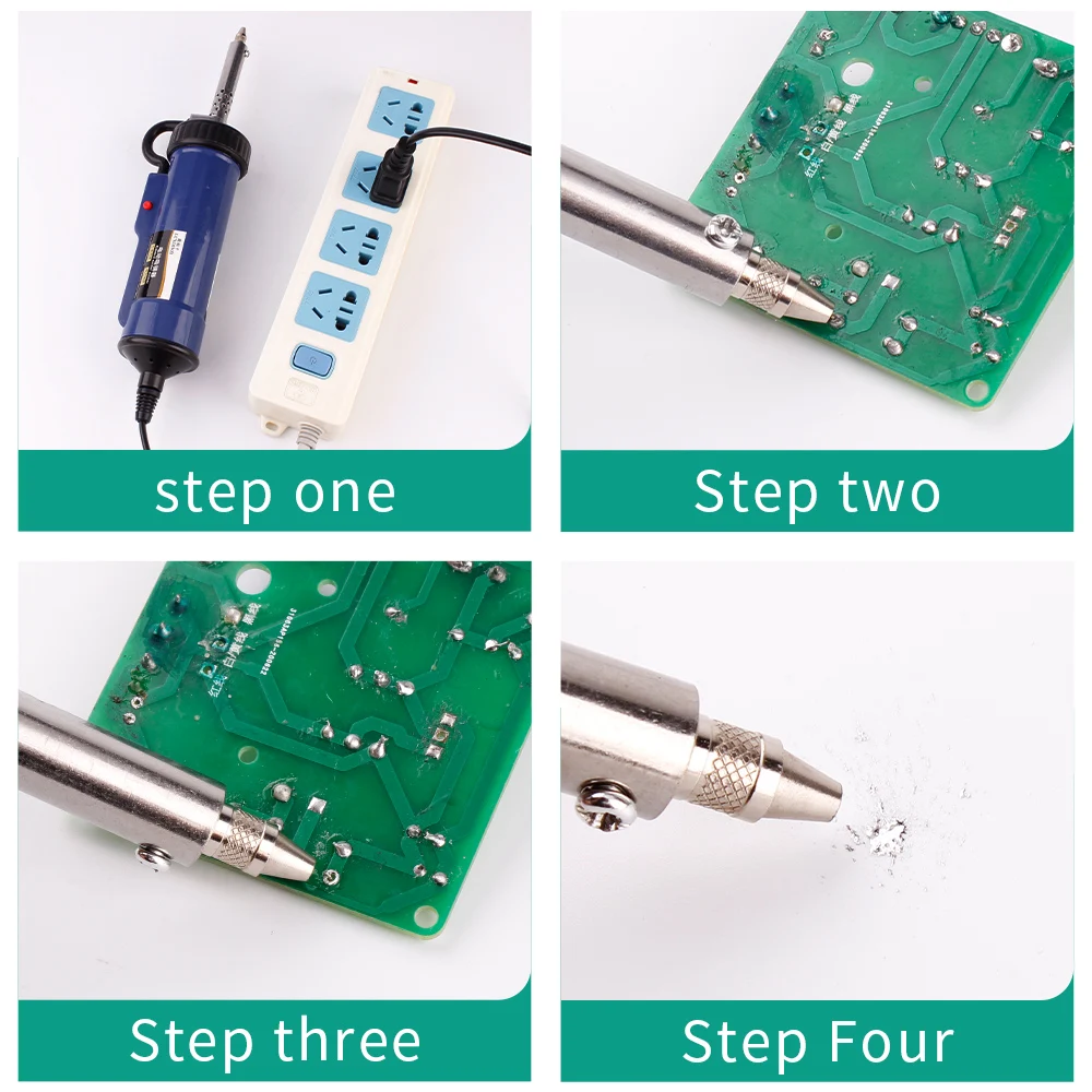 4.Remove the solder sucker from the solder joints, and release the solder sucking button to remove the dross