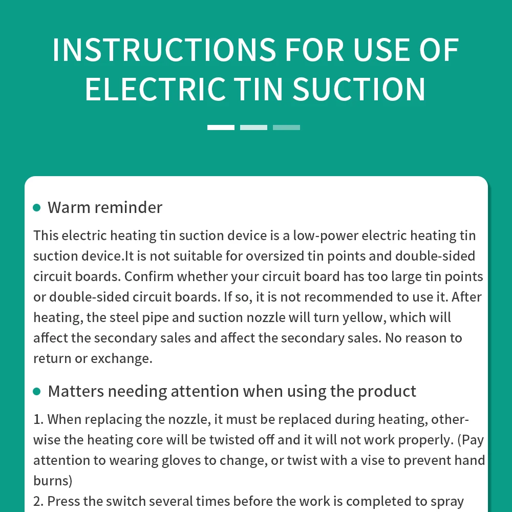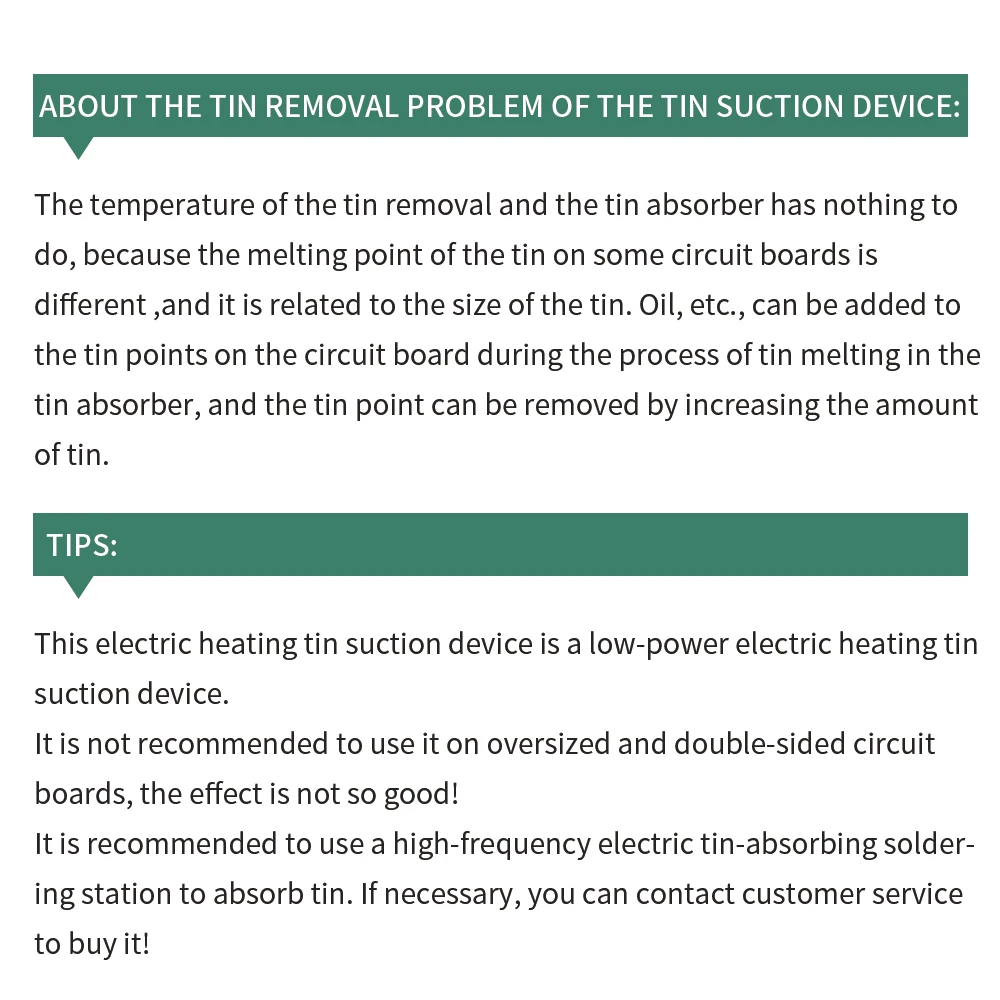 It is recommended to use a high-frequency electric tin-absorbing soldering station to absorb tin. If necessary, you can contact customer service to buy it!