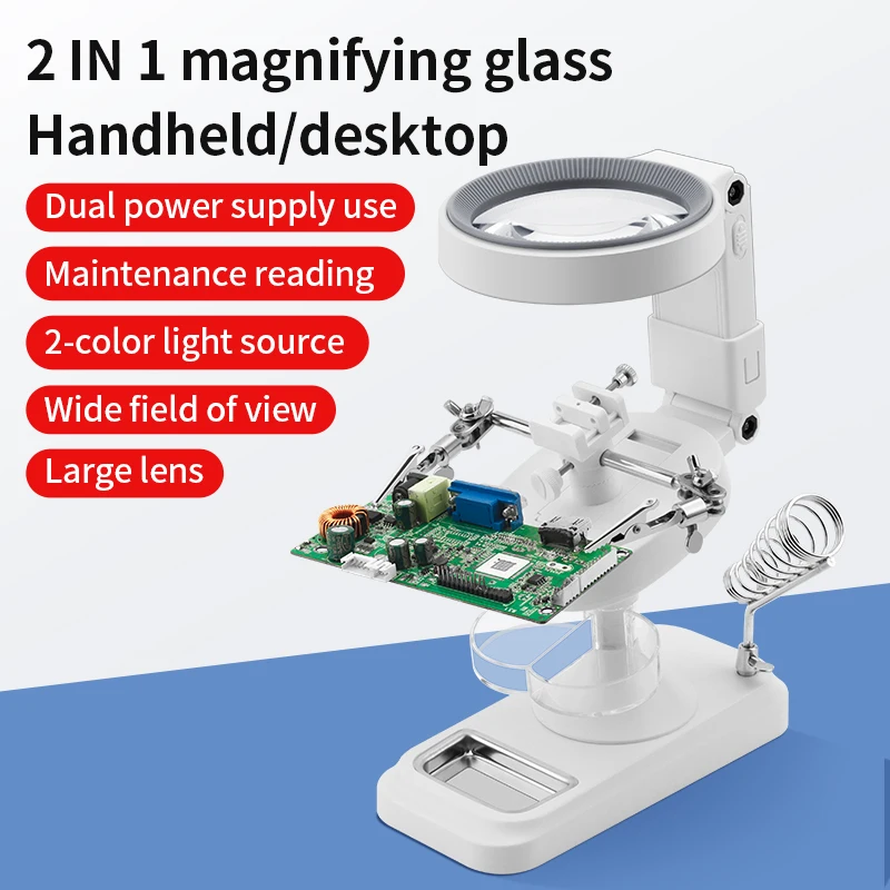 LUXIANZI Lupa de luz LED con clip de soporte para soldadura PCB