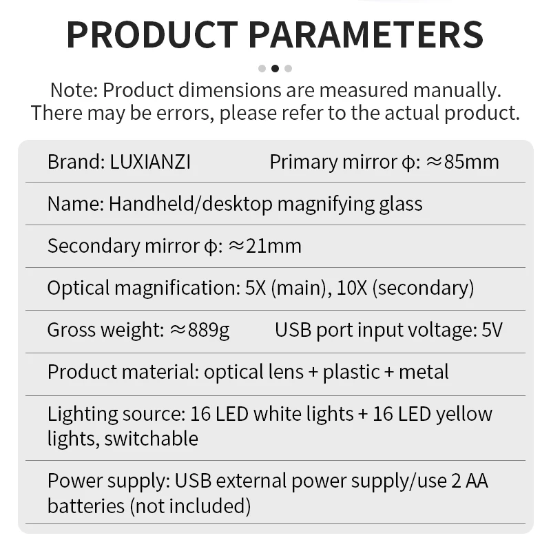 Nombre del producto: Lupa de mano/de escritorio