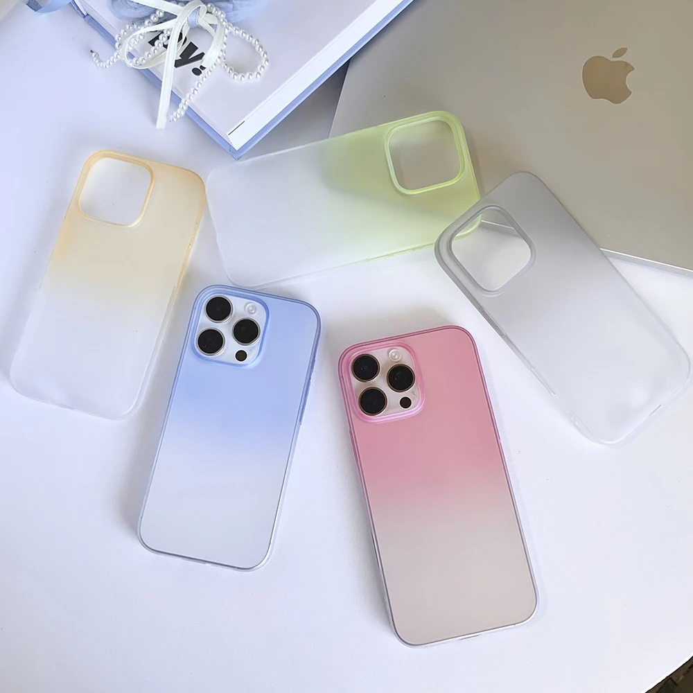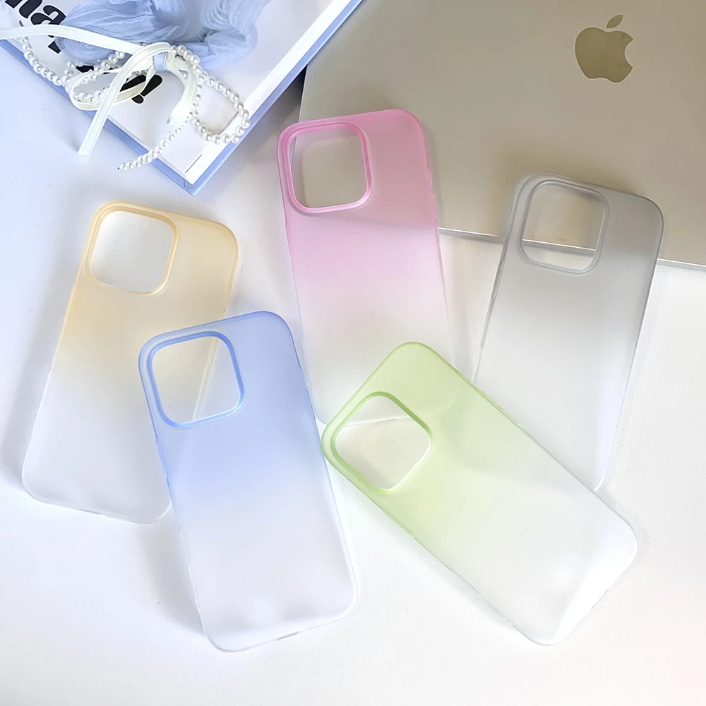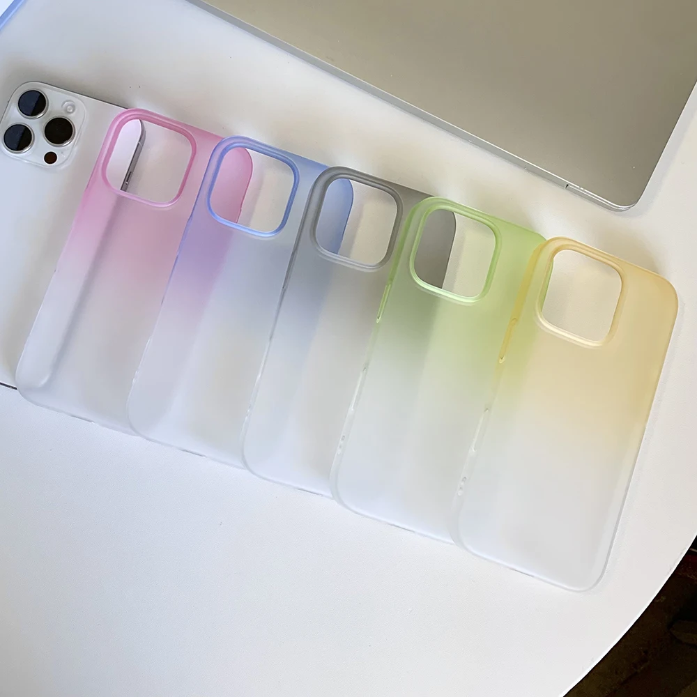 Luxury Gradient Color PC Hard Case For iPhone 16 15 14 13 12 Pro Max Plus Matte Clear Back Cover Transparent Candy Color Shell
