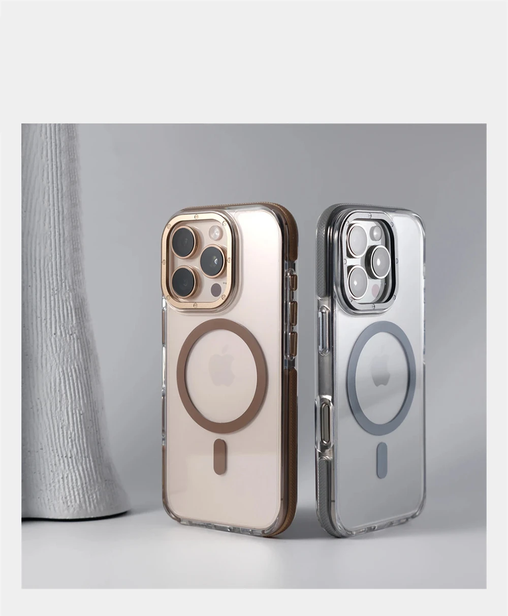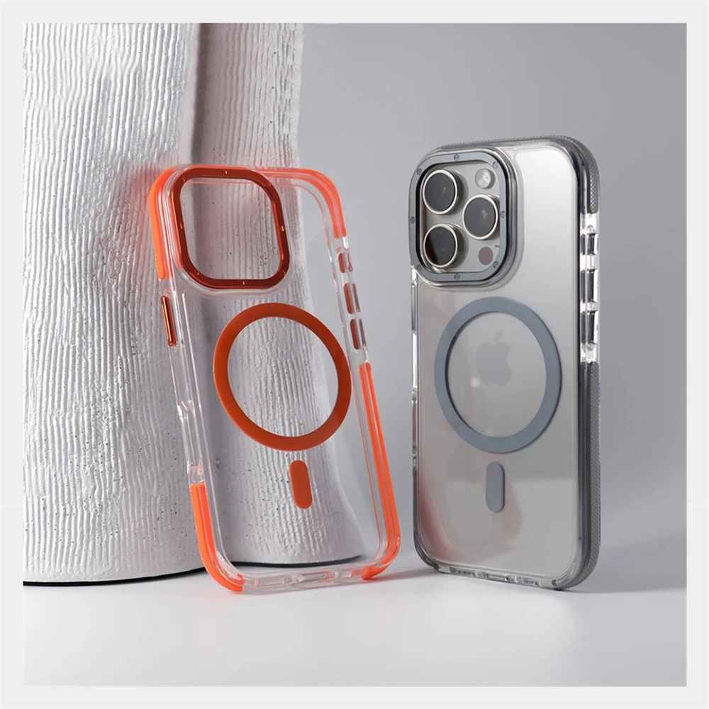 Luxury Transparent Magnetic Bumper Case For iPhone 17 Air 16 Pro Max 15 14 13 12 For Magsafe Wireless Charg Non-Slip Clear Cover