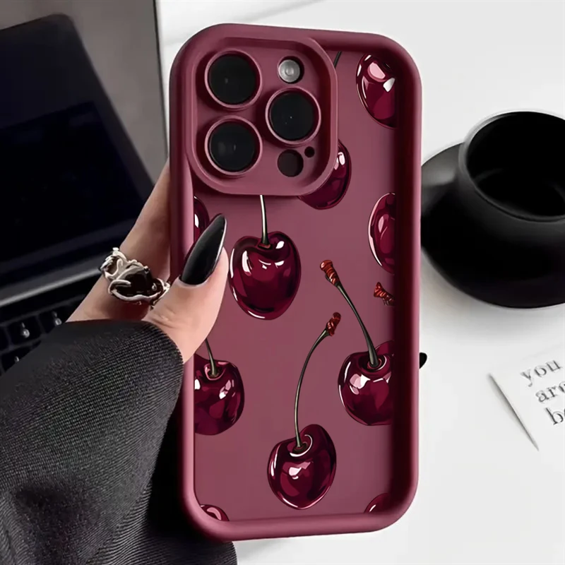 Luxury Wine Red Cherry Print Silicone Soft Phone Case For iPhone 17 16 15 14 13 12 11 Pro Max 17 Air 16E XS X XR 7 8 Plus Cover