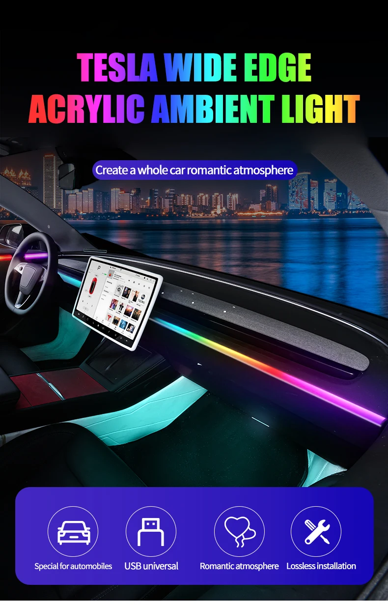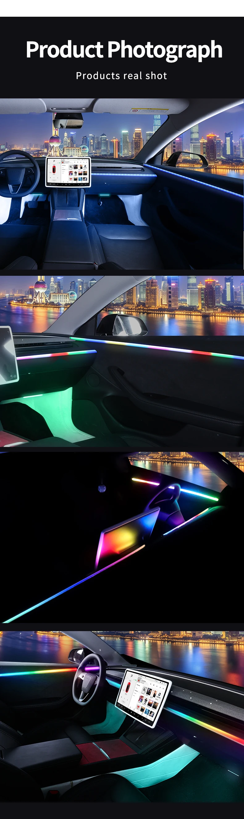 Nuevo coche luz ambiental consola central salpicadero tubos de neón para Tesla Model 3/y Symphony RGB luces interiores con controlador de aplicación