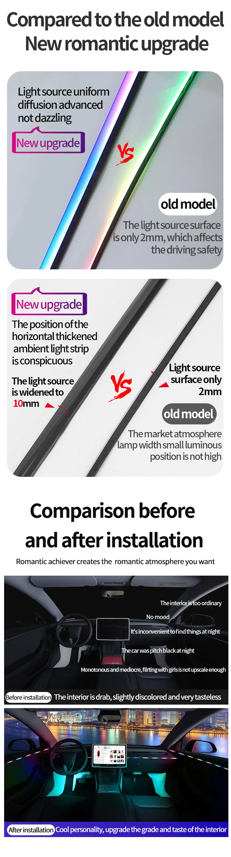 Diseño personalizado: la luz de neón ambiental Nestour es personalizada, apta específicamente para Tesla 2021-2022 Model 3 Model Y.