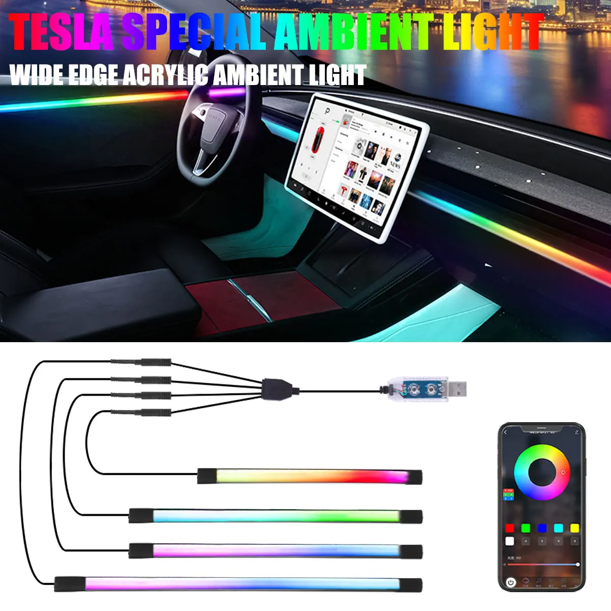 Comprar Luz ambiental para salpicadero de consola central de coche, tubos de neón para Tesla Model 3/Y Symphony, luces interiores RGB con controlador de aplicación, nuevo