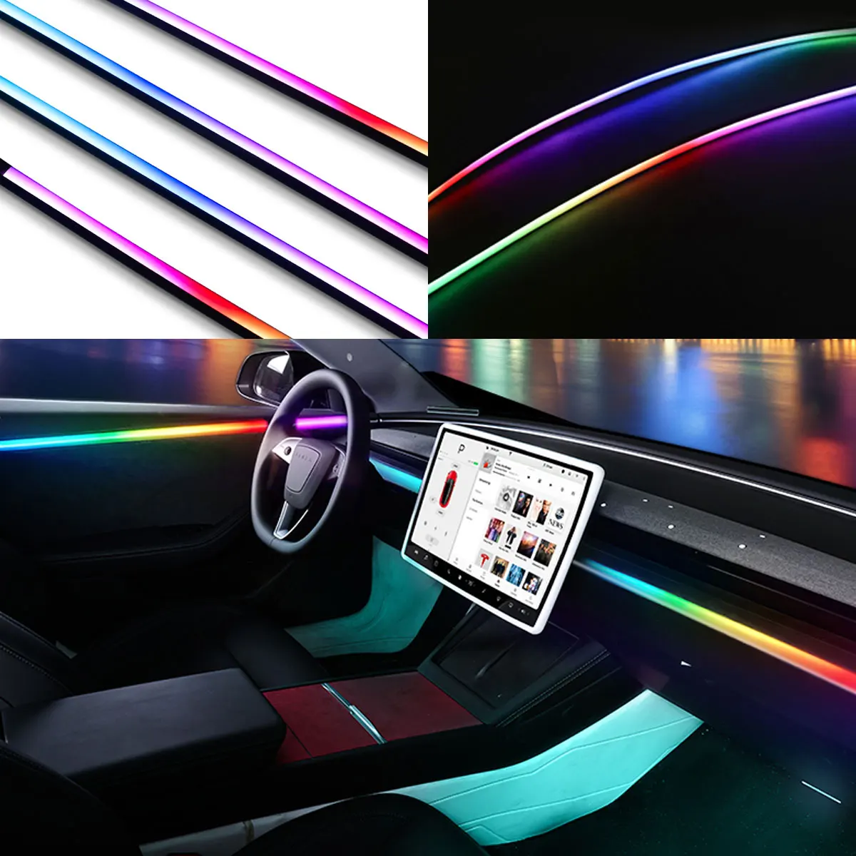 Nuevo coche luz ambiental consola central salpicadero tubos de neón para Tesla Model 3/y Symphony RGB luces interiores con controlador de aplicación
