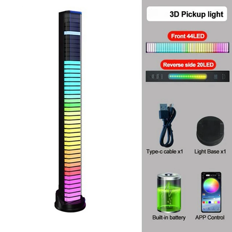 Comprar Luz de Control de sonido RGB 3D, lámpara de ritmo musical de doble cara, barra de luces de Control de sonido, LED inalámbrico para juegos de coche y TV
