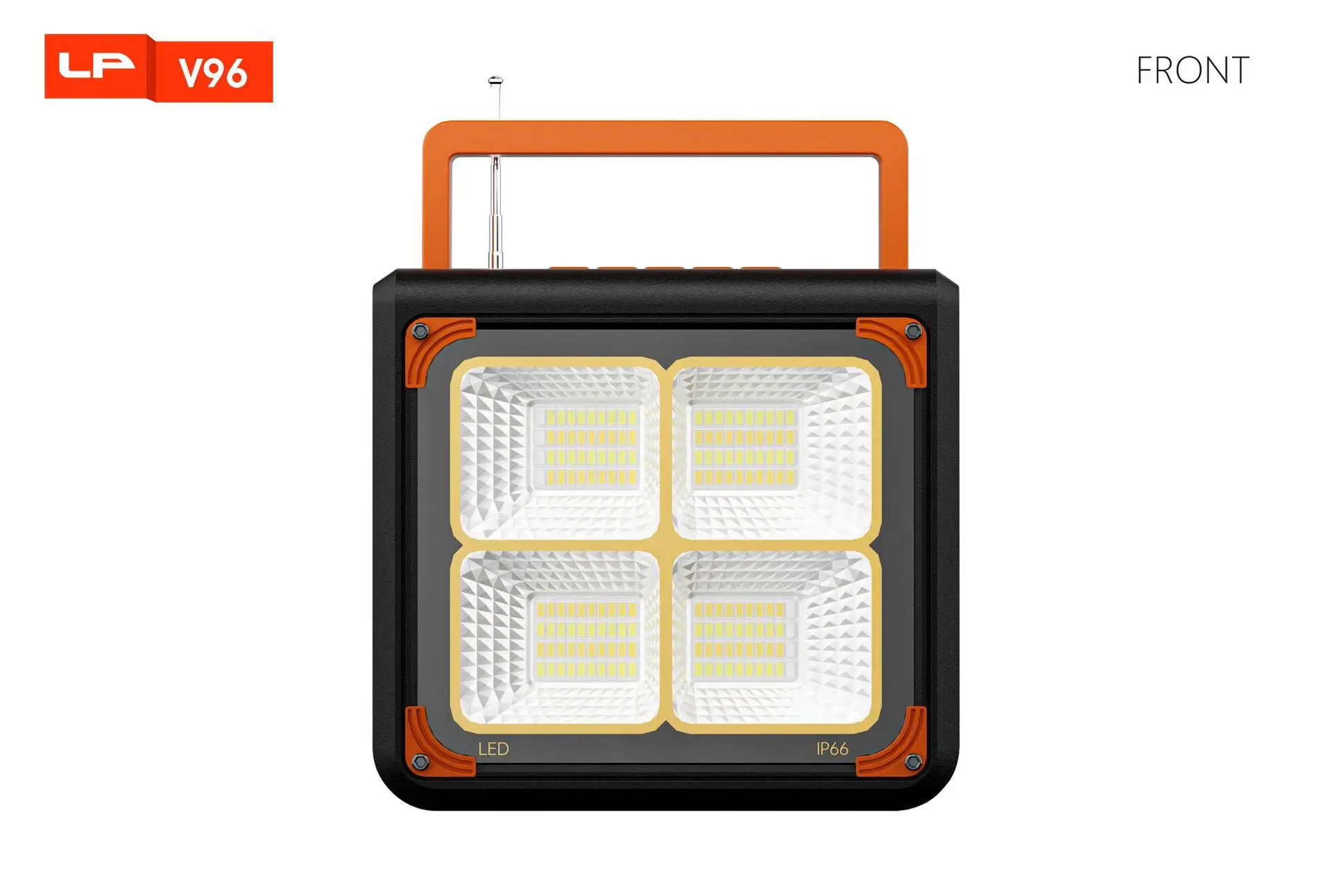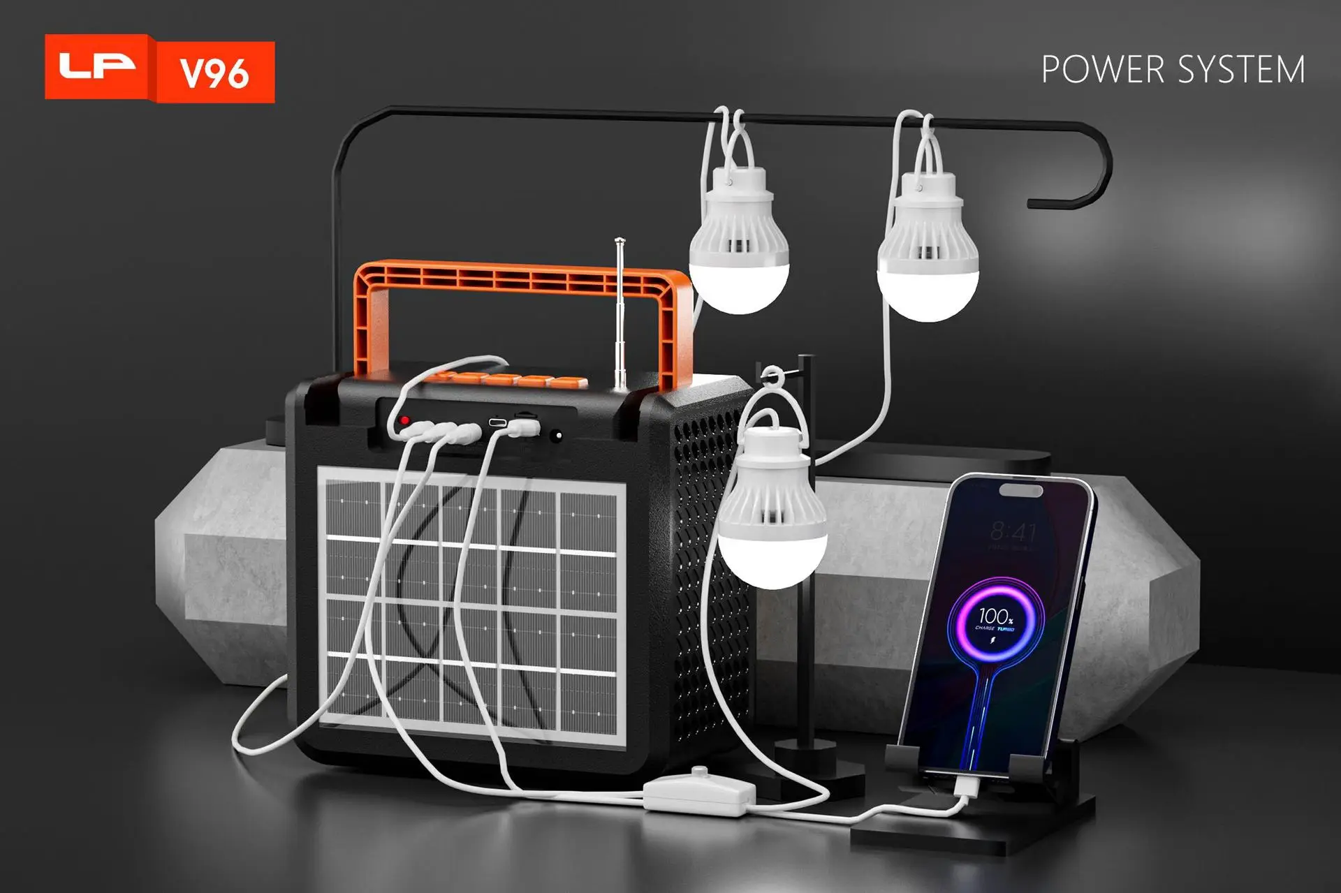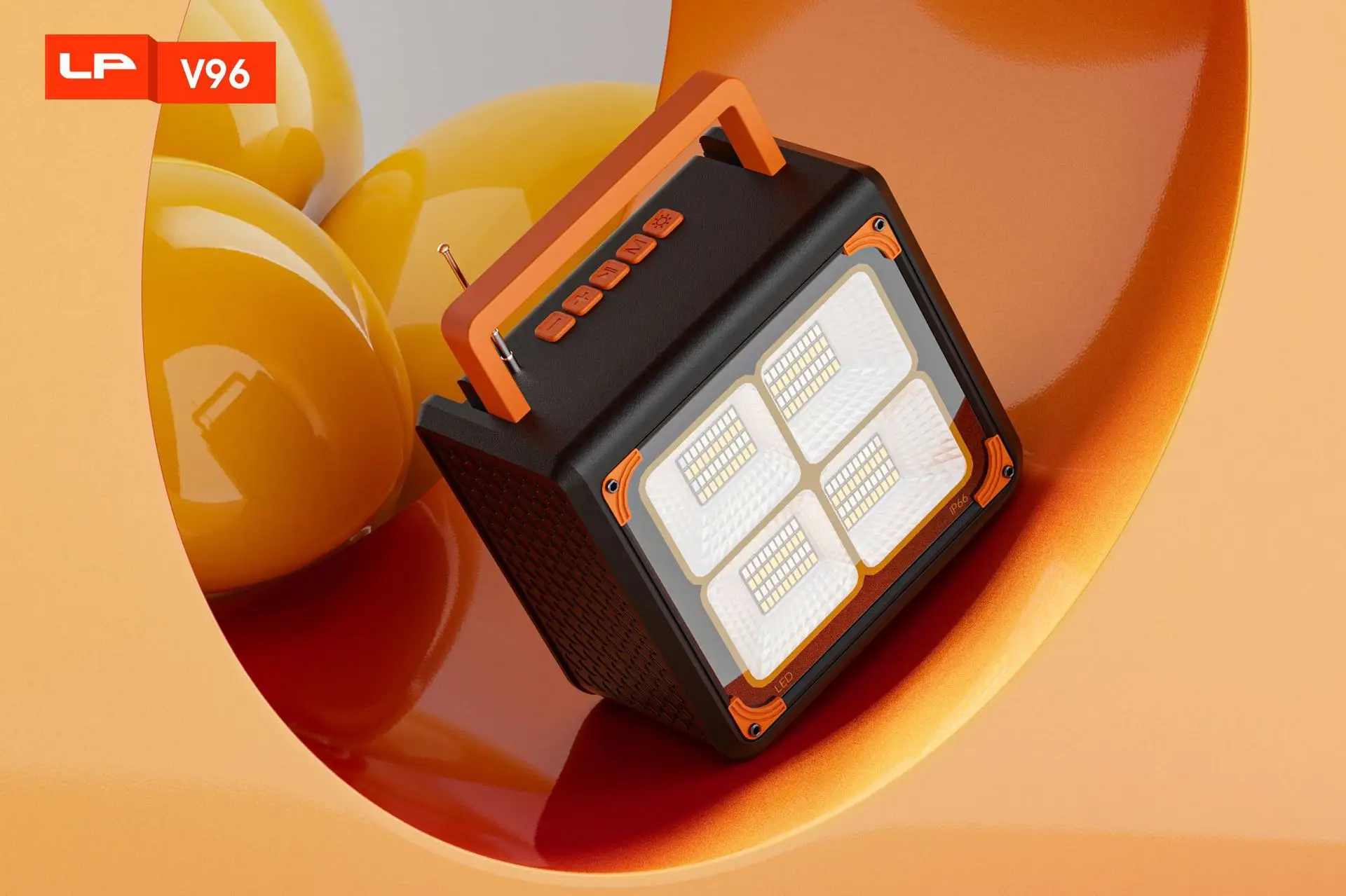 1: Altavoz de 3 pulgadas y 10 W + antena externa + batería de 4500 LED mAh + soporte para carga de teléfonos móviles + mango grande + panel solar de vidrio + lámpara de iluminación + carga tipo C + salida de CC.