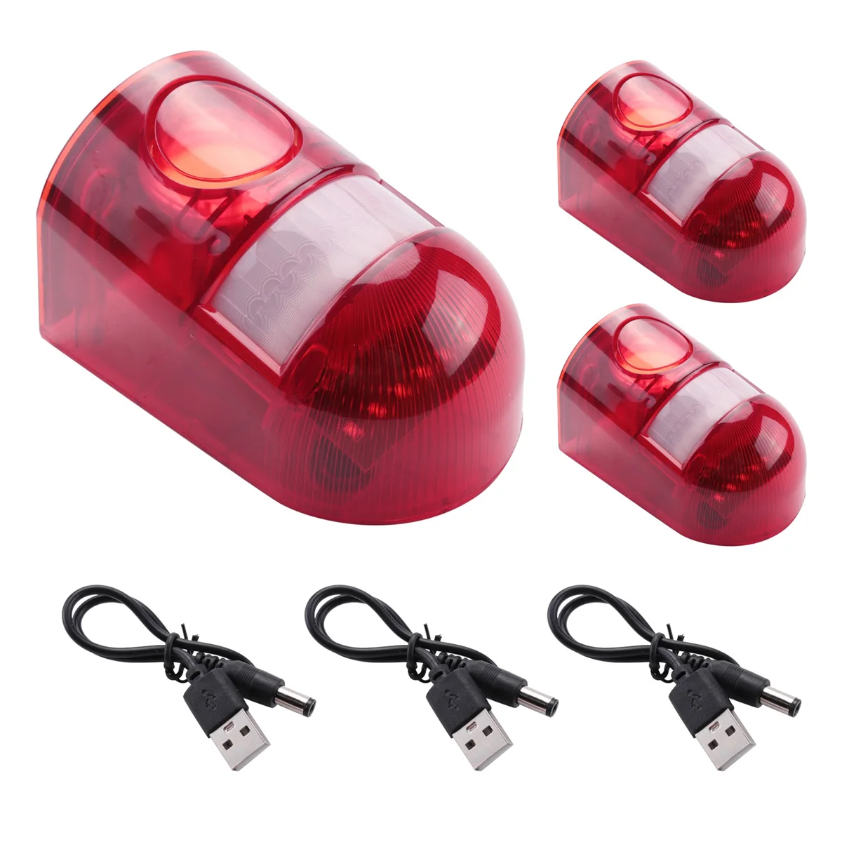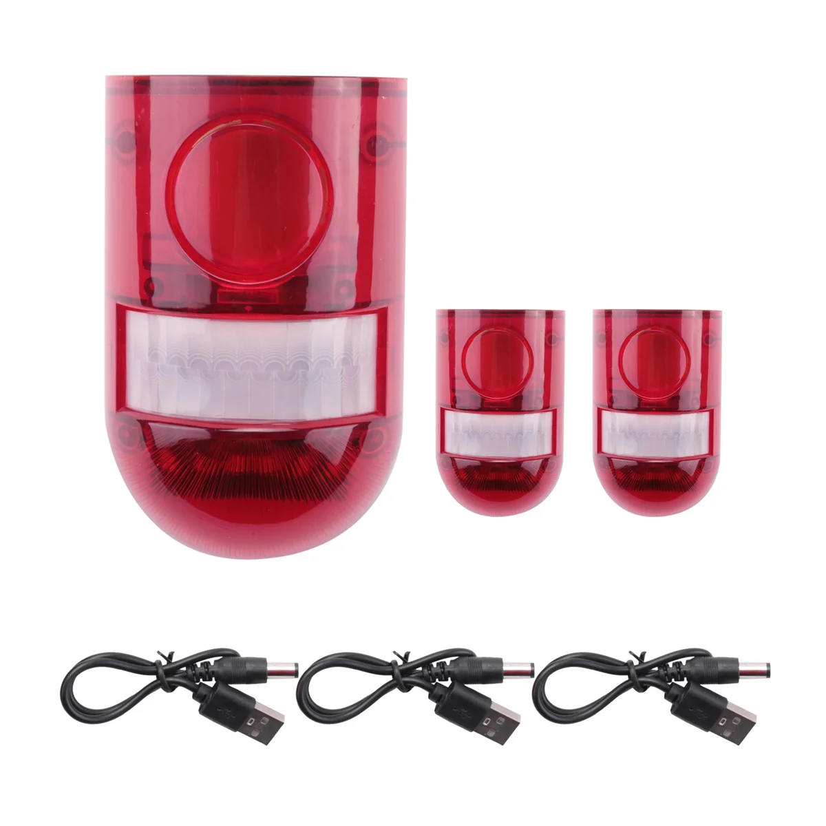 Comprar Luz estroboscópica Solar con Sensor de movimiento, sirena de seguridad de sonido de 129DB, impermeable IP65, para Villa, granja, patio, jardín, paquete de 3