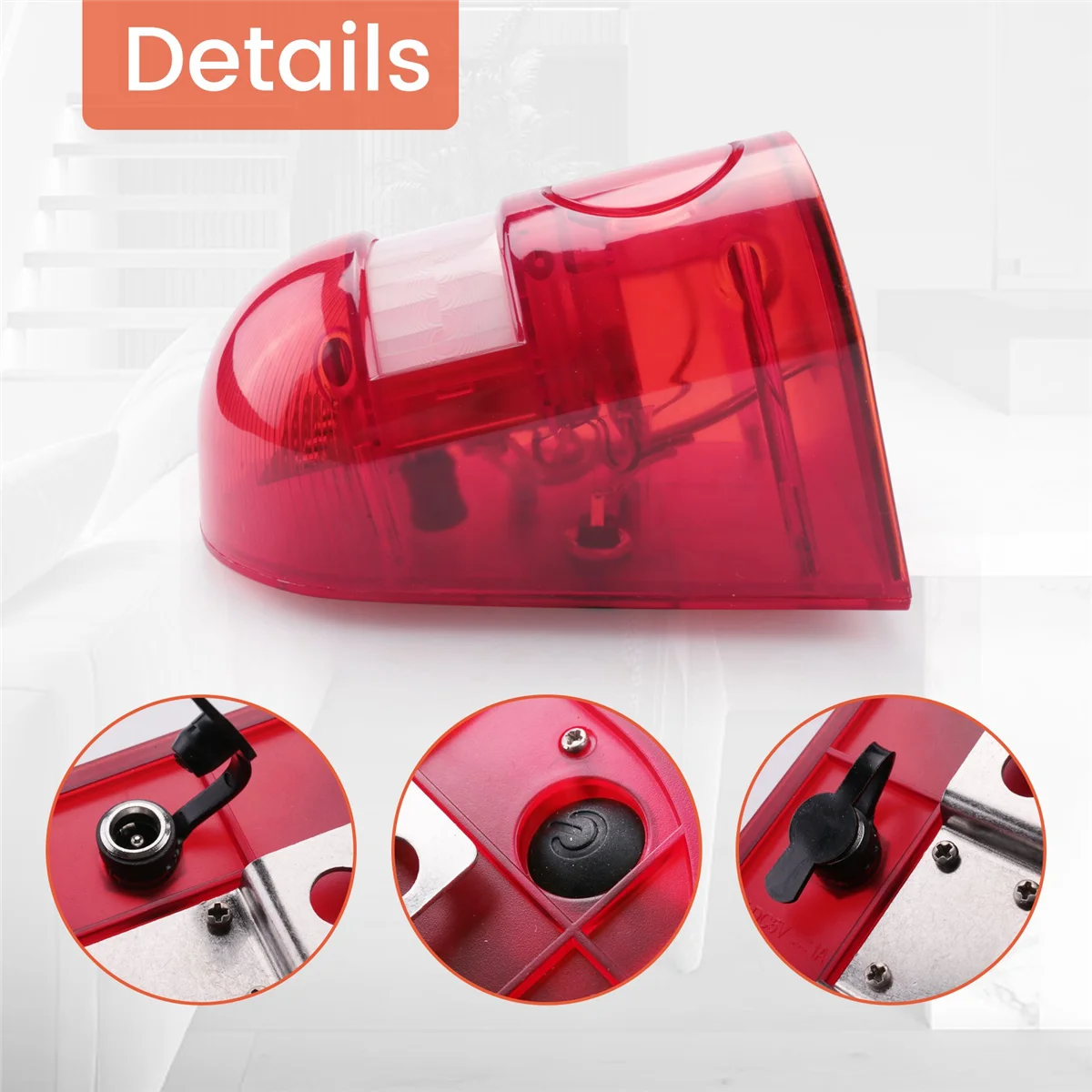 Activado por movimiento: el sensor de movimiento sensible detectará cualquier movimiento dentro de 5 a 8 metros y activará la alarma de luz sonora, el sonido surge y la luz estroboscópica encenderá.