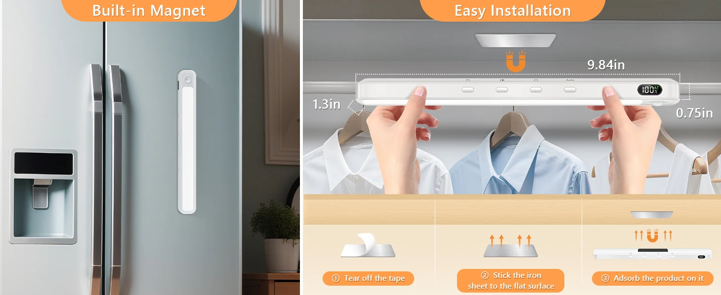 • Portátil en cualquier lugar, con imán en la parte posterior, se puede adherir directamente a la superficie metálica.