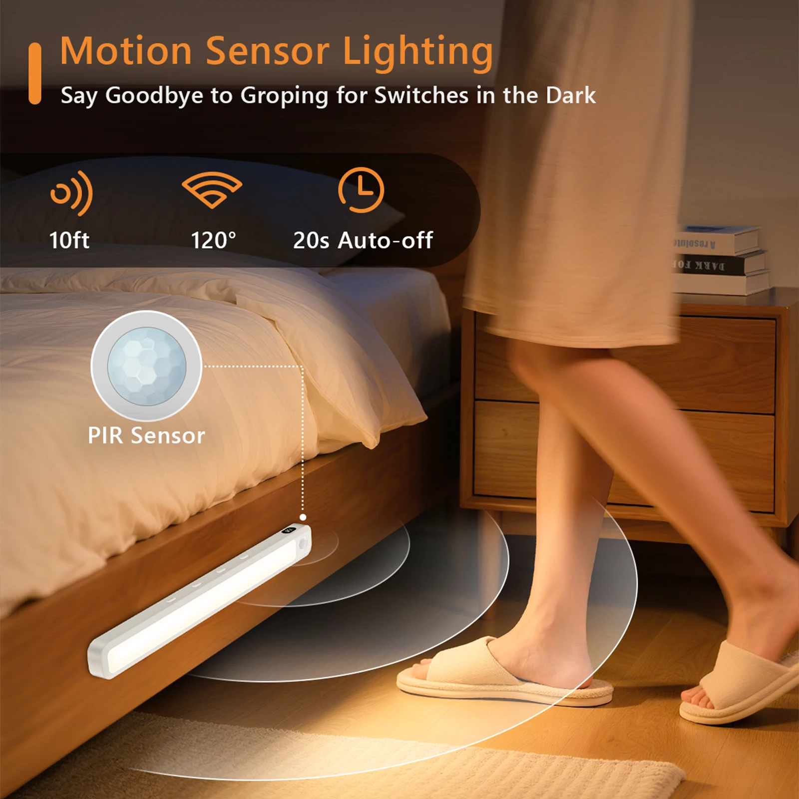 Comprar Luz de gabinete con Sensor de movimiento recargable WILLED, barra de luz magnética regulable de 3 colores para interiores, luz nocturna para armario, escritorio