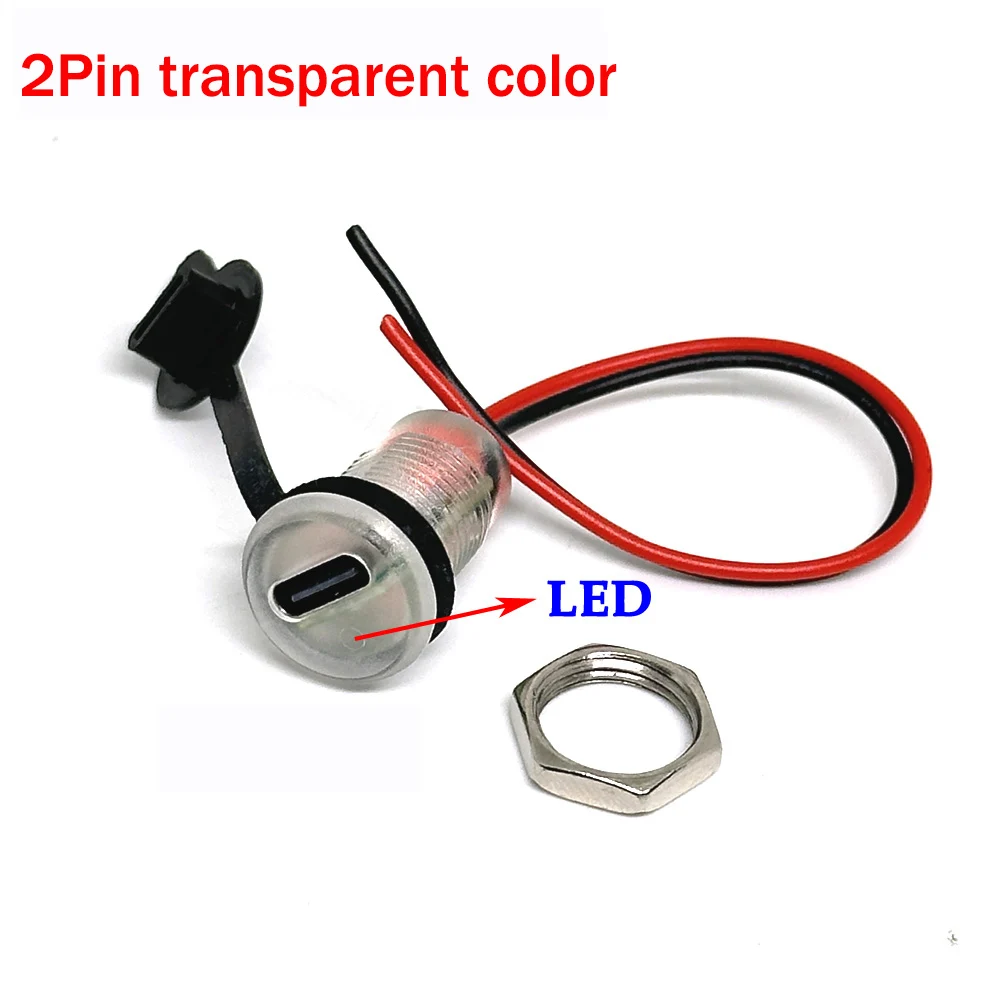 Luz LED de 2 pines USB tipo c conector impermeable tuerca de bloqueo enchufe hembra interfaz de carga de soldadura