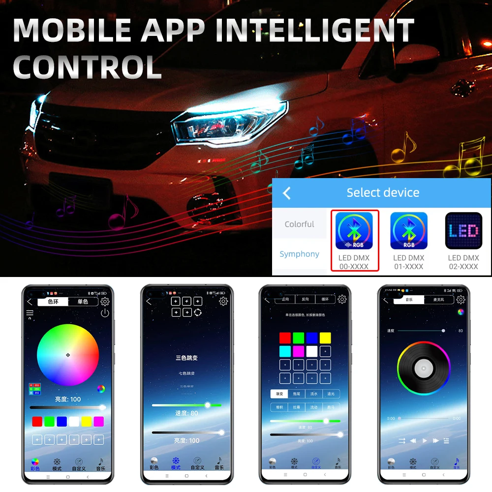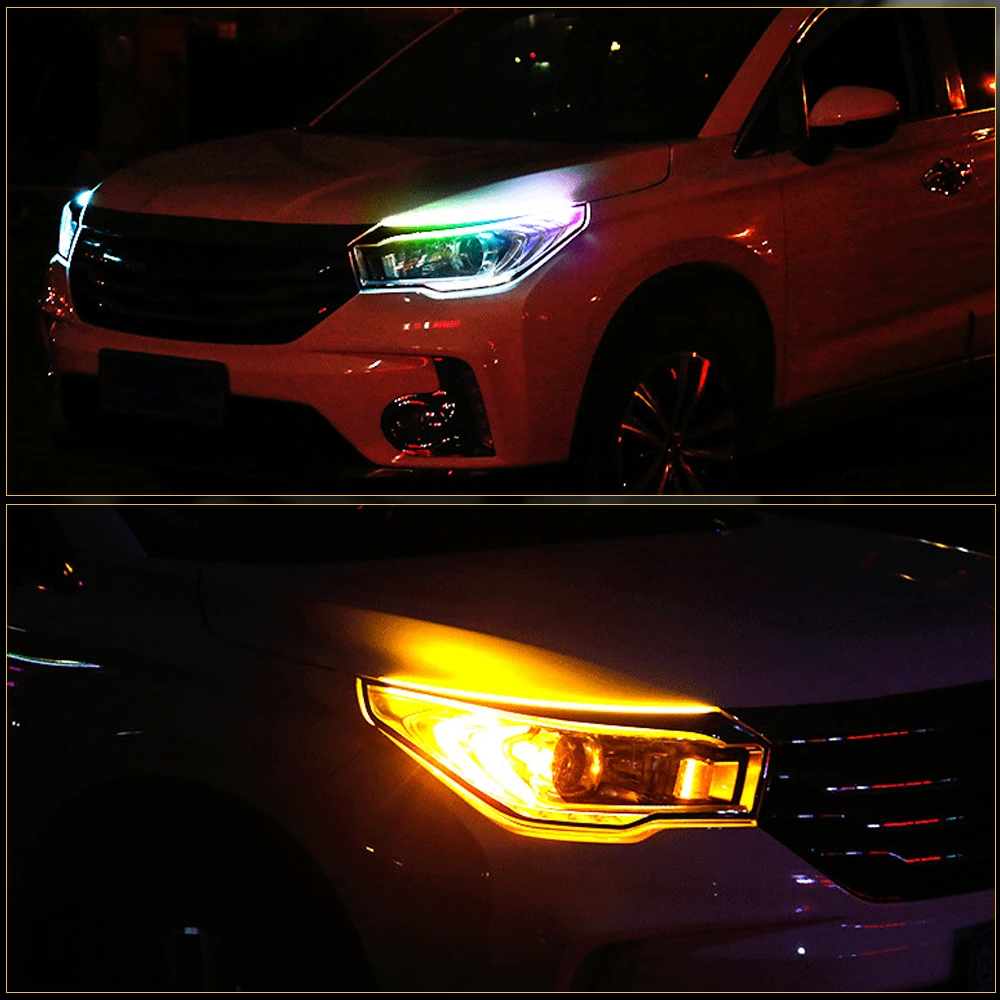 2pcs DRL Car LED Daytime Running Light APP Control Flexible RGB Symphony Flowing Turn Signal Strip Headlight Decorative Lamp 12V