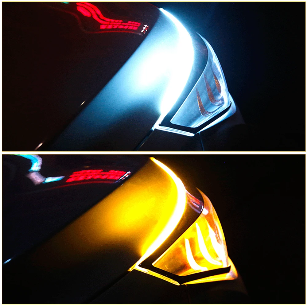 Comprar Luz LED de conducción diurna DRL para coche, Control por aplicación, sinfonía RGB Flexible, tira de señal de giro que fluye, lámpara decorativa para faro, 12V, 2 uds.
