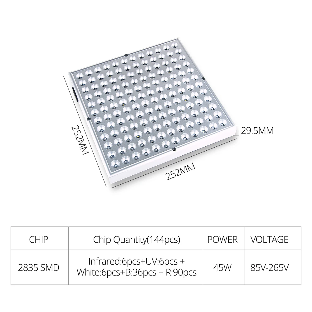 45W SMD2835 144leds (rojo: 90, azul: 36, Blanco: 6 ,UV:6 ,IR:6)