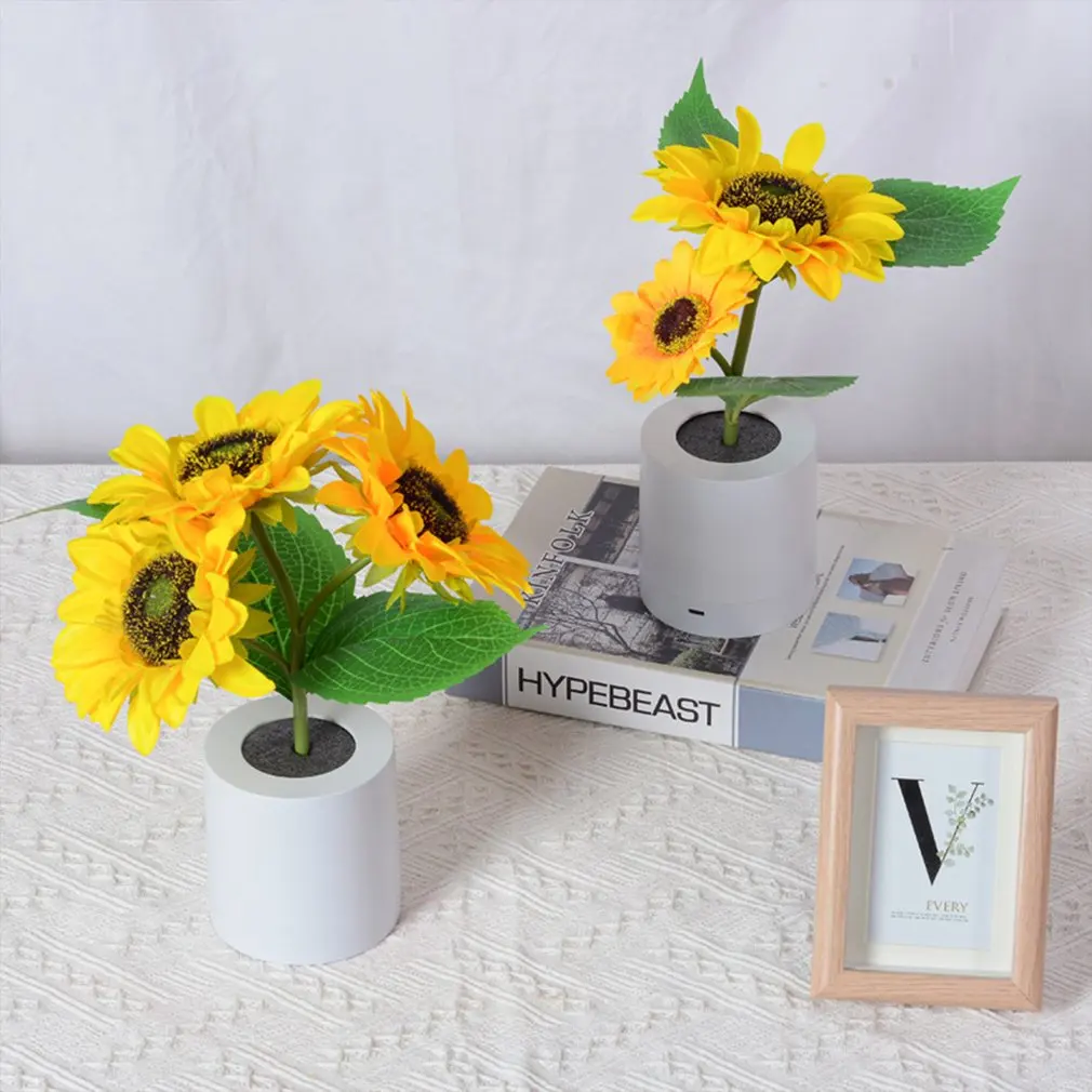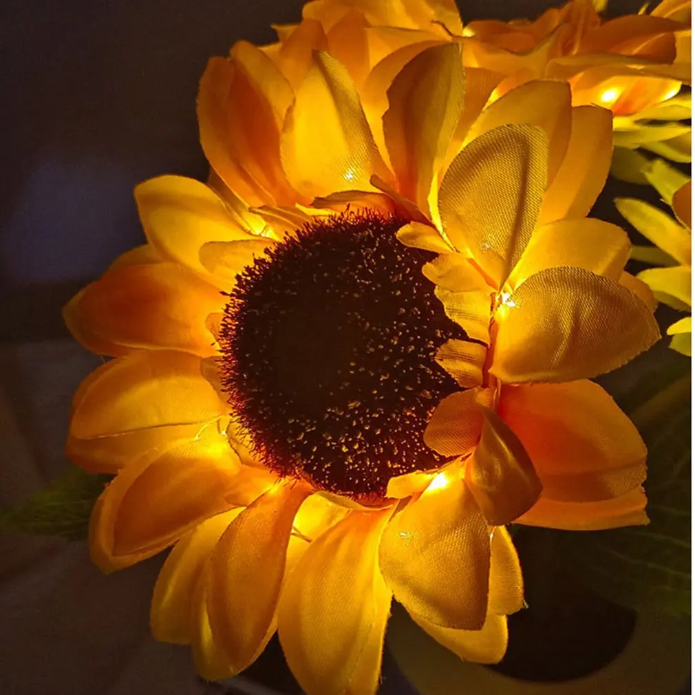 Flores artificiales en maceta de girasol, sensación real, no se decolora fácilmente. No solo se puede utilizar como lámpara de noche, sino también como una decoración perfecta para el dormitorio, la decoración de la sala de estar, la decoración de bodas, la decoración del jardín, etc.