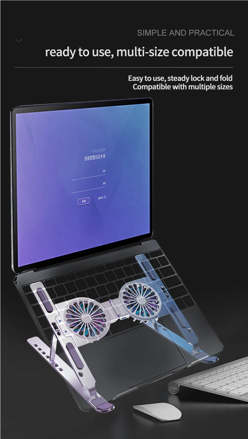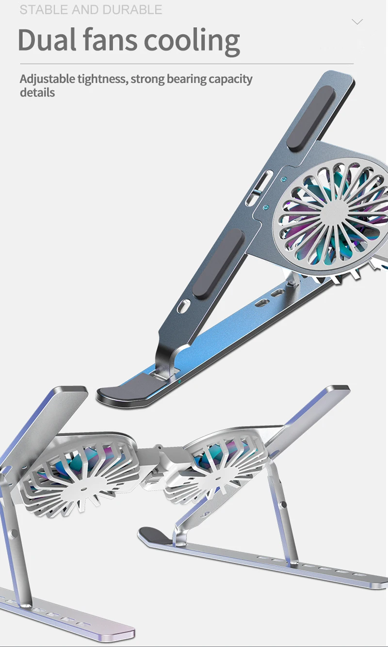 Metal aleación de aluminio RGB LED luz 2 ventilador de refrigeración Notebook Laptop Stand Holder