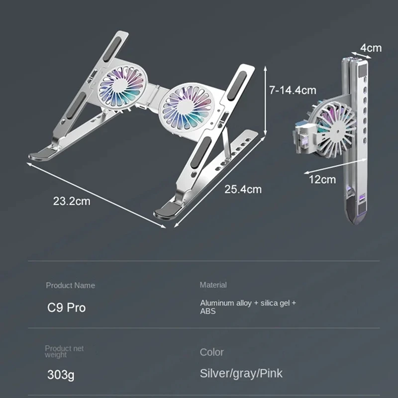 Disipación de calor de doble turbina: orificio de enfriamiento para computadora portátil conectado directamente, disipación de calor ajustable de viento de dos engranajes sin obstrucciones.