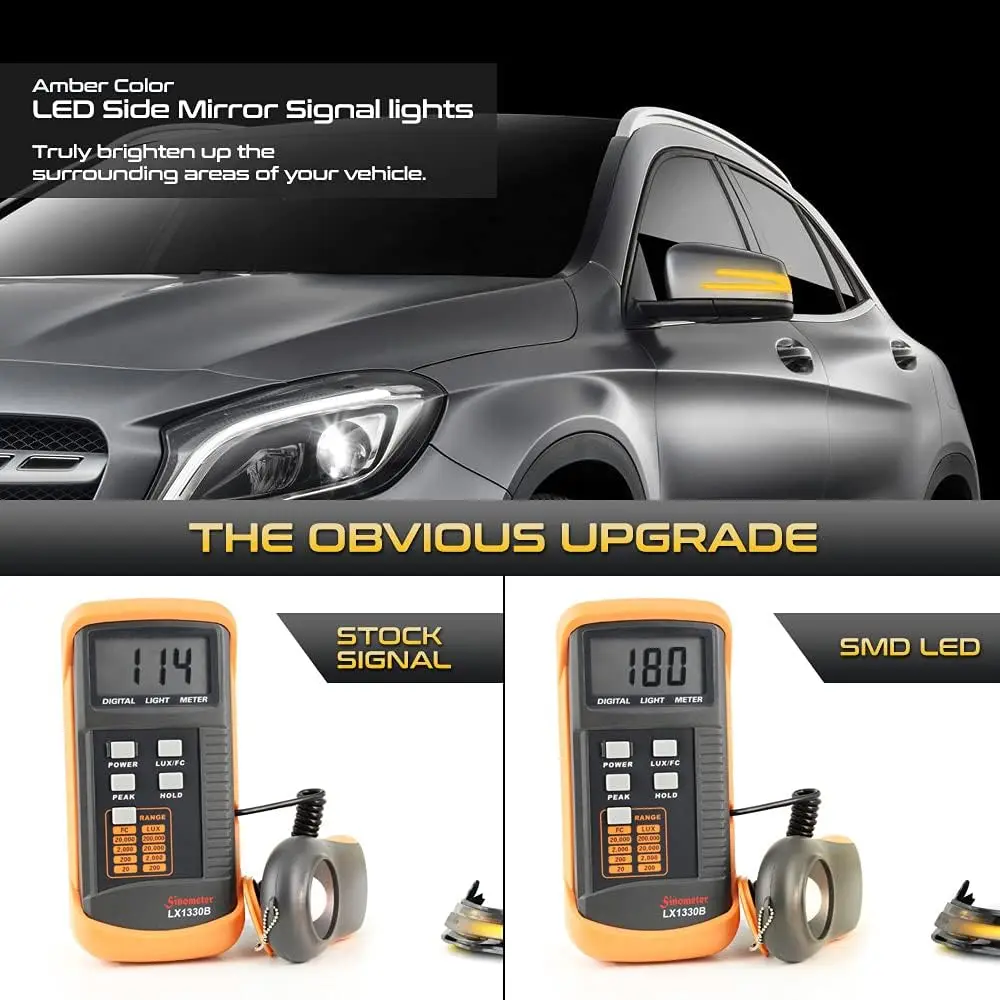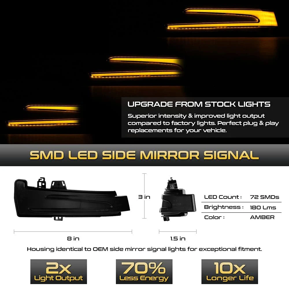 • Señal de vuelta dinámica ligera del LED :La luz LED de señal de giro dinámica proporciona una iluminación brillante y clara, asegurando que su vehículo sea visible desde la distancia.