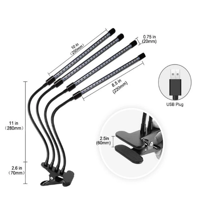 1/2/3/4/5 cabezas 5V USB Grow Light