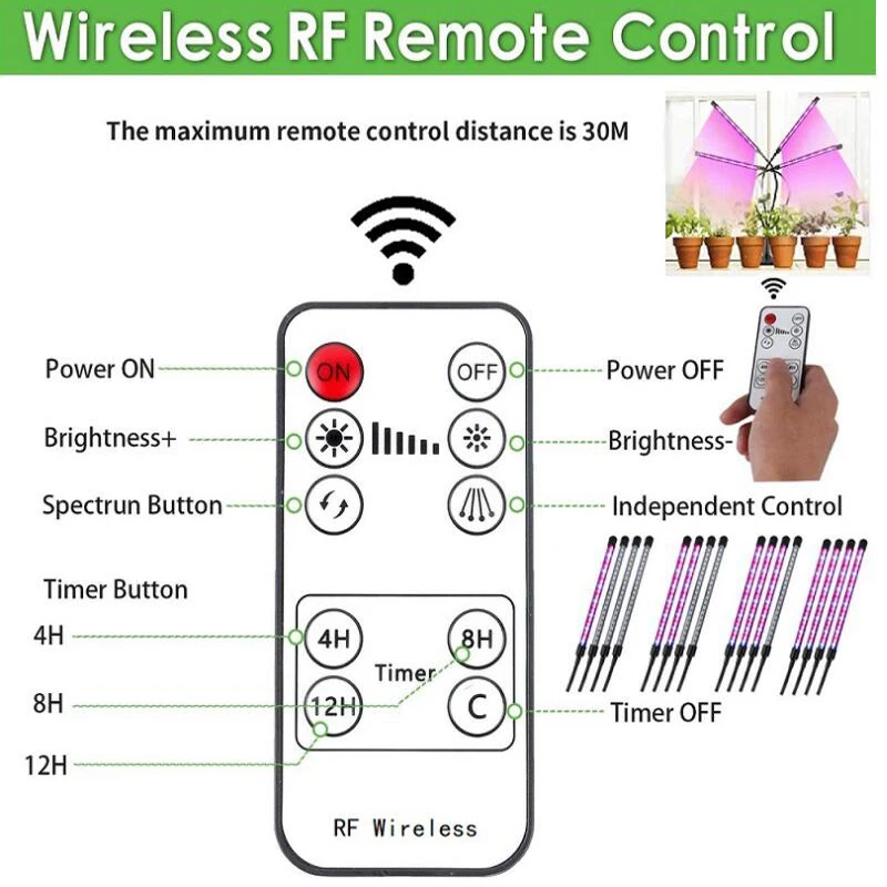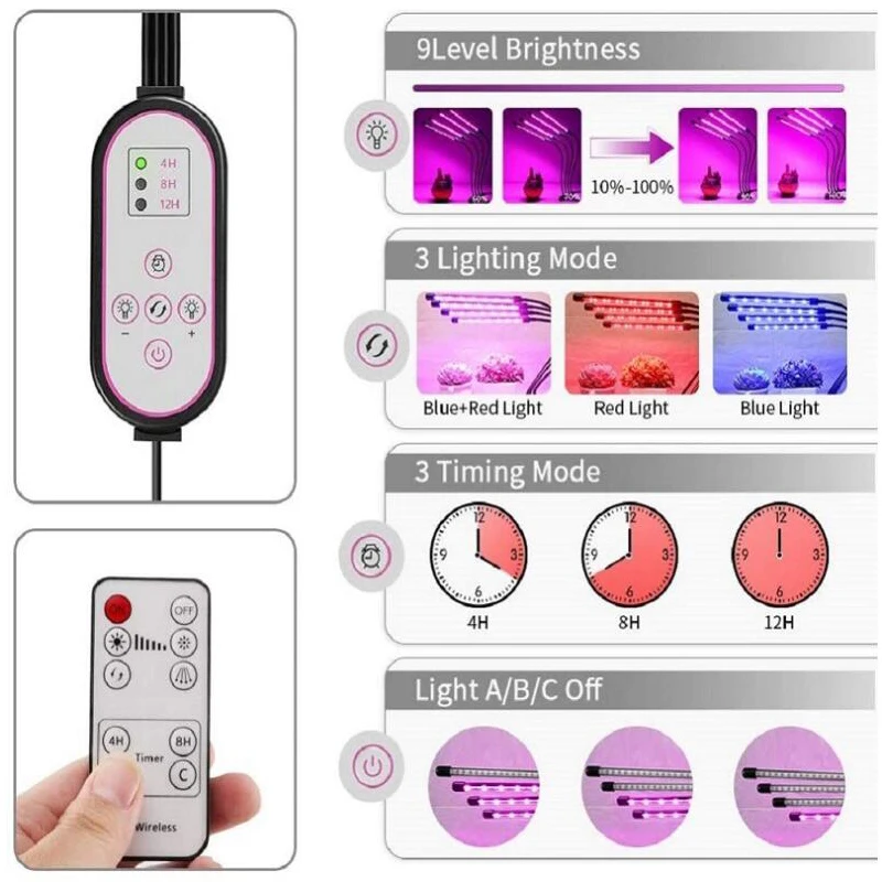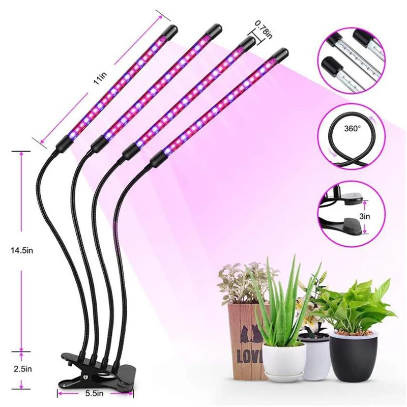 Imagen del producto, lámpara de cultivo USB de 4 cabezales de 36W con controlador (no incluye batería Cr2025)