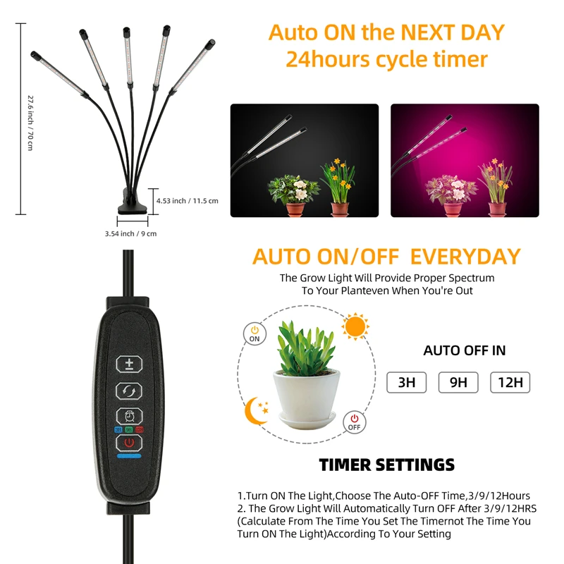 Imagen del producto 45W 5 cabeza USB grow lamp: