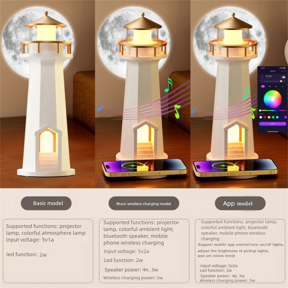 Modelo de carga inalámbrica de música: admite funciones como luces de proyección, luces ambientales de colores, parlantes Bluetooth y carga inalámbrica para teléfonos móviles;