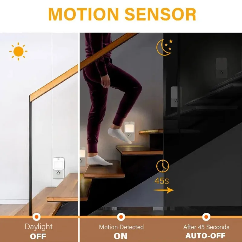 Luz nocturna con Sensor de movimiento con luz LED, lámparas de enchufe europeo, luz nocturna para niños, lámpara de noche inalámbrica para mesita de noche, dormitorio