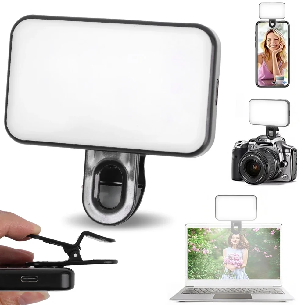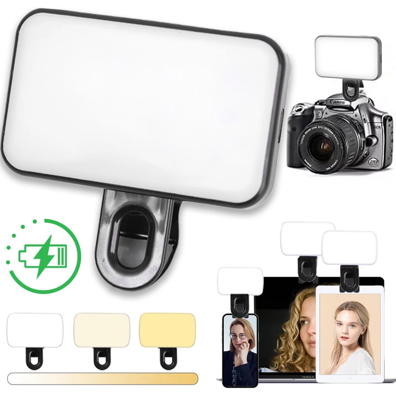 Luz recargable para Selfie con Clip, luz LED de relleno para cámara de vídeo para iPad/portátil/teléfono/TikTok/maquillaje/Kit de iluminación para conferencias Vlog