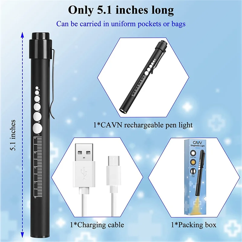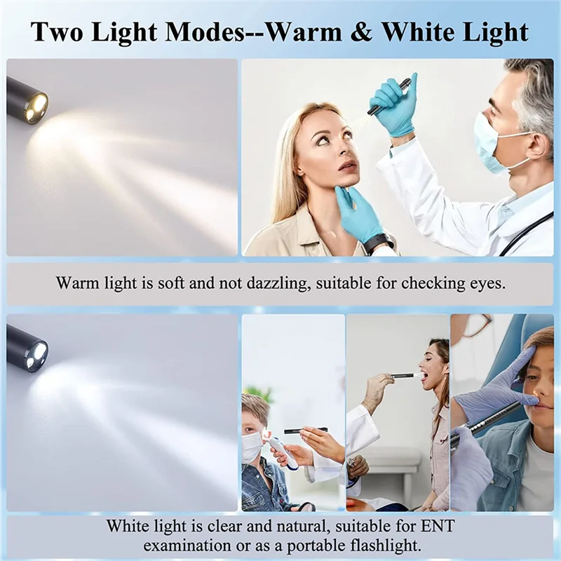 Esta luz de bolígrafo puede cambiar entre los modos de luz blanca y luz cálida según sus necesidades.La luz blanca es adecuada para revisar la nariz, la boca, las orejas o como linterna para iluminar, la luz cálida es adecuada para revisar los ojos.