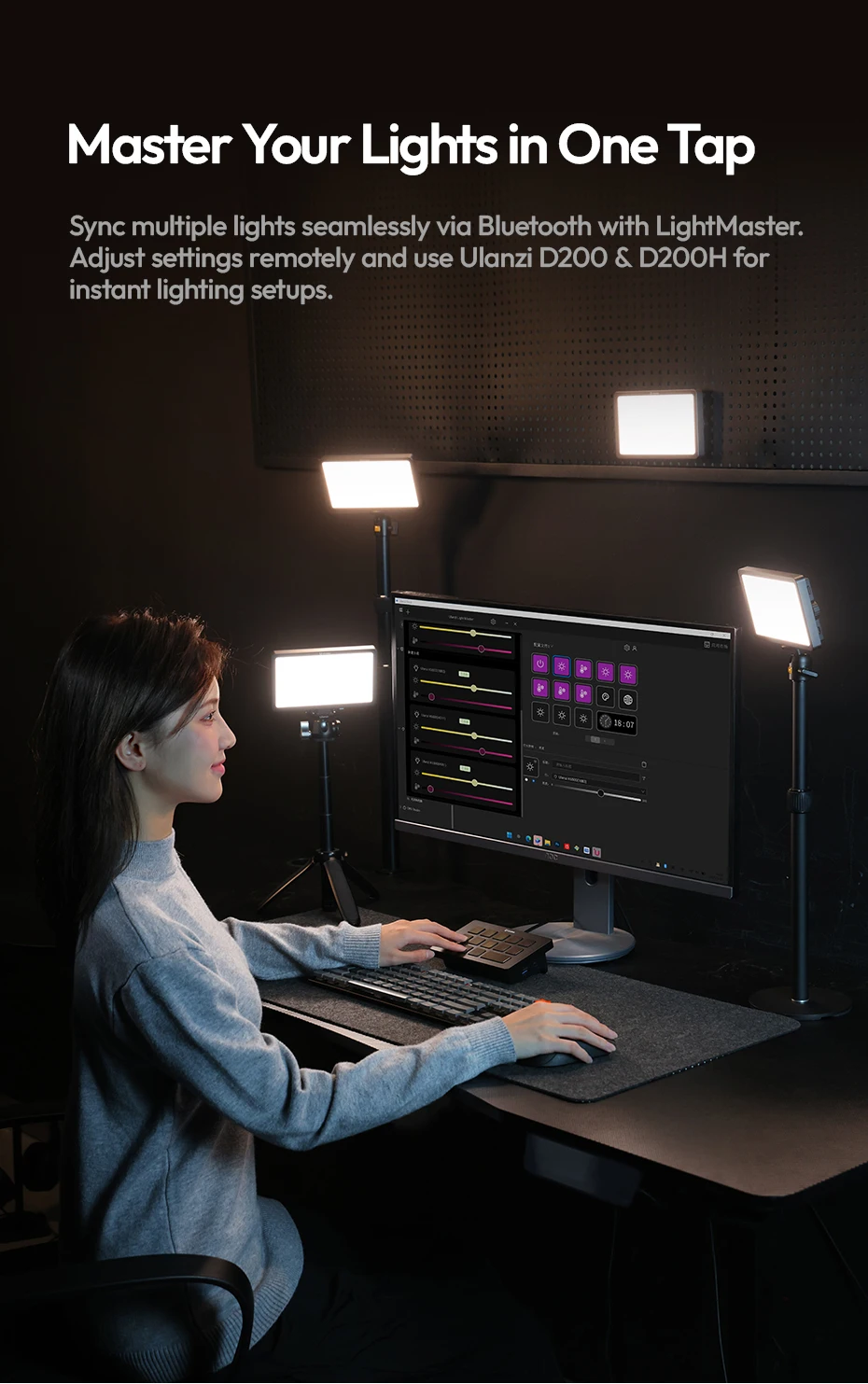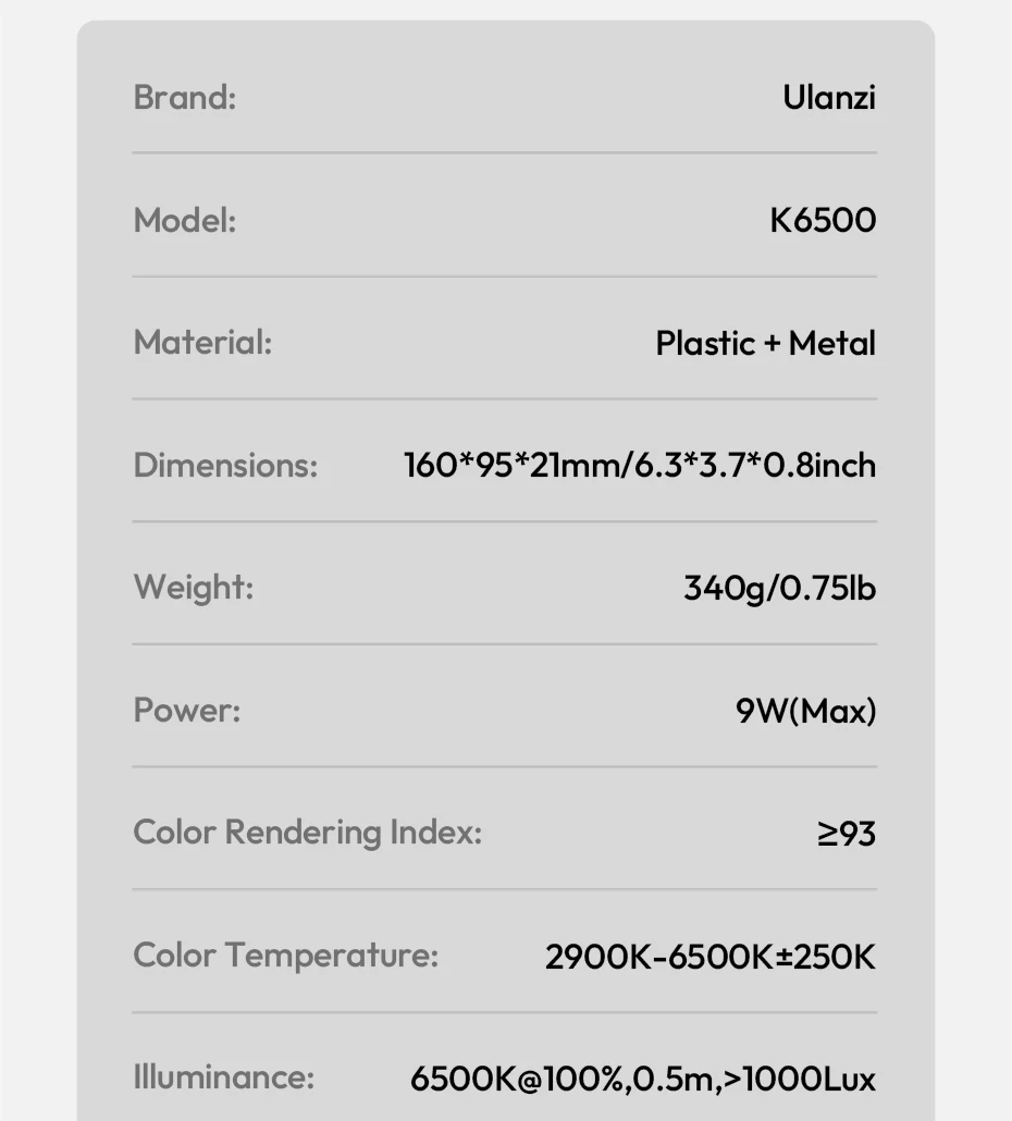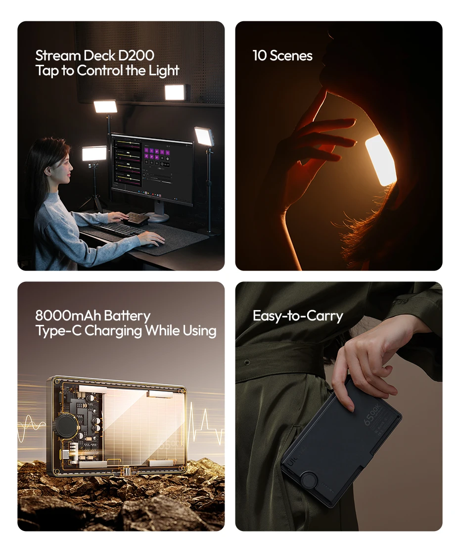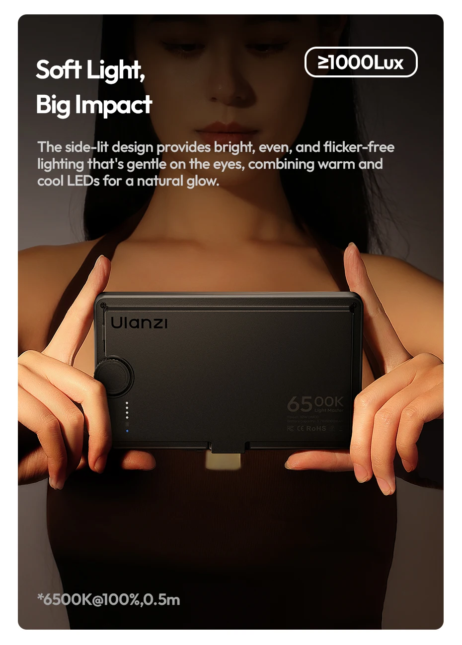 Luz de vídeo Bluetooth magnética de estudio Ulanzi K6500 con carga tipo c luz suave bicolor para transmisión en vivo Vlog Home Studio