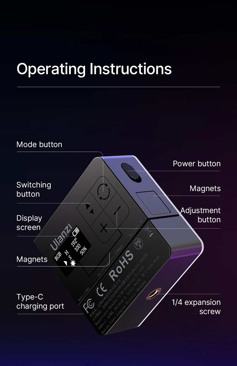Comprar Luz de vídeo Ulanzi VL49 RGB PRO actualizada, 2500K-9000K, luz LED para cámara, batería recargable de 2500mAh, difusor de panal para Vlog