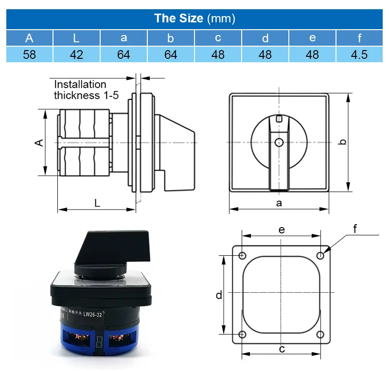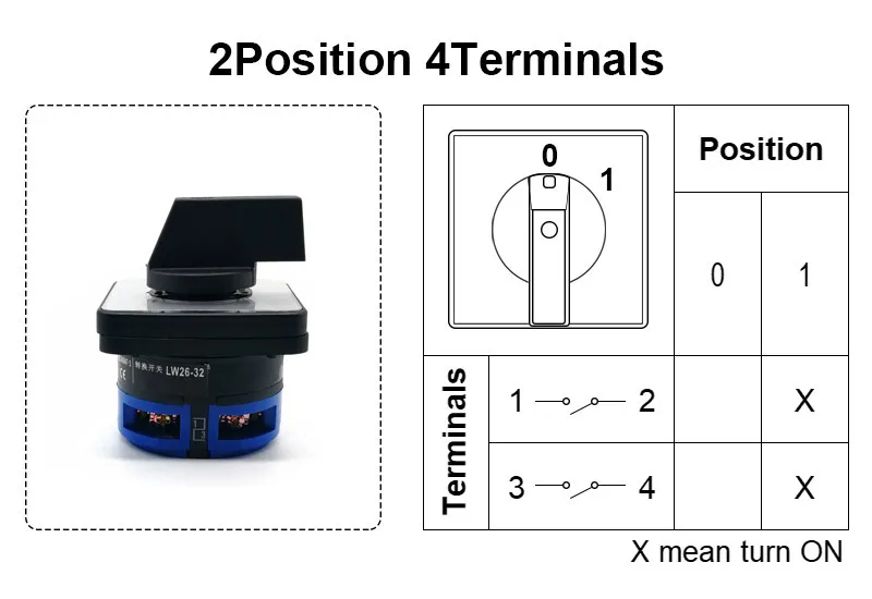 Comprar LW28-32 Interruptor de cambio de leva giratorio eléctrico de 2 posiciones y 4 terminales, perilla de 550V 32A