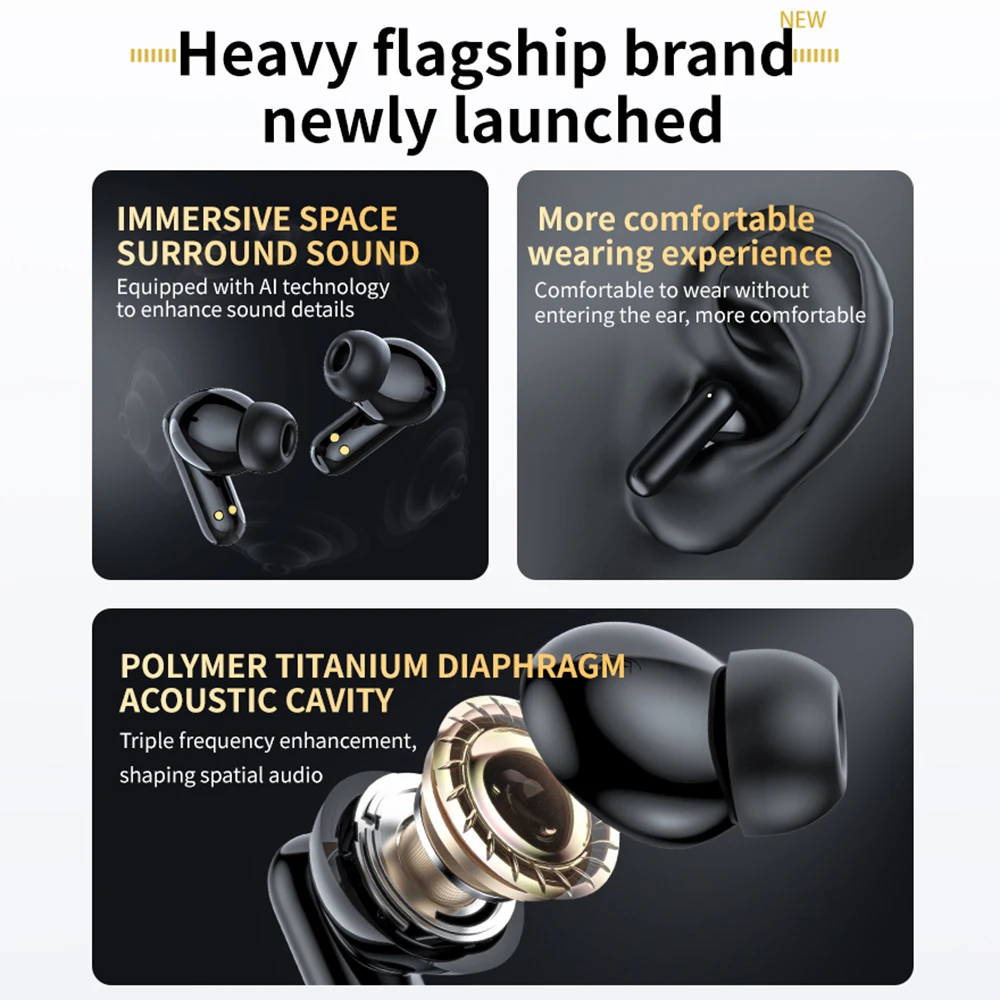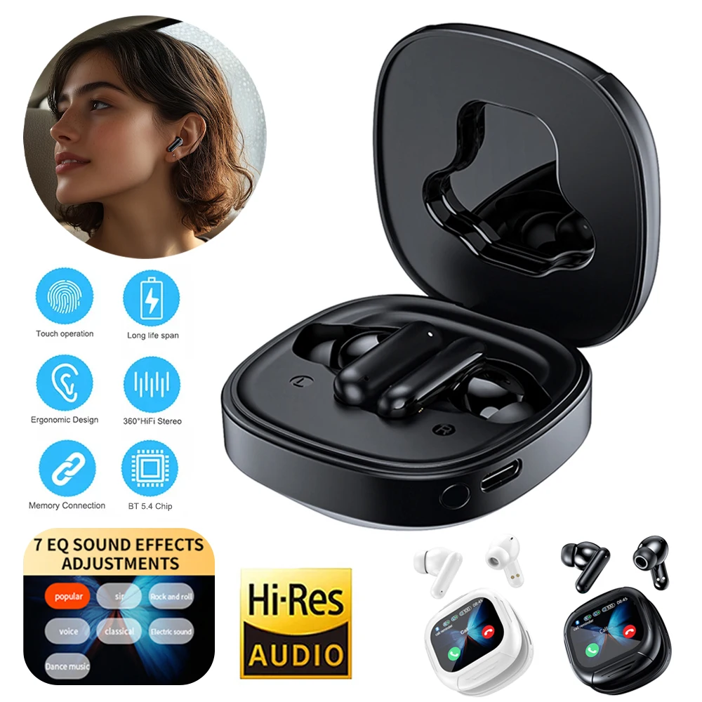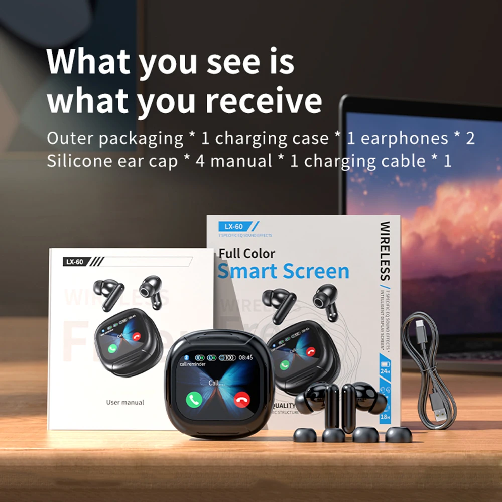 Nuevos auriculares LX-60 con pantalla táctil completa ANC Bluetooth 5,4 Auriculares con cancelación de ruido HiFi estéreo inalámbricos ENC auriculares con micrófono para iPhone Xiaomi Samsung Huawei