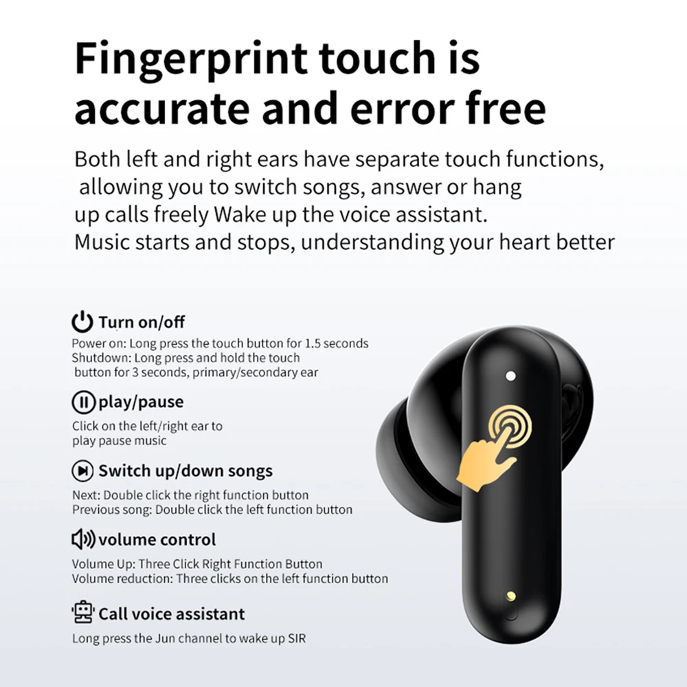 ✅ El panel táctil multifuncional en cada auricular ayuda a reproducir, pausar, ajustar el volumen, responder, finalizar llamadas y activar Siri y el Asistente de Google cómodamente.