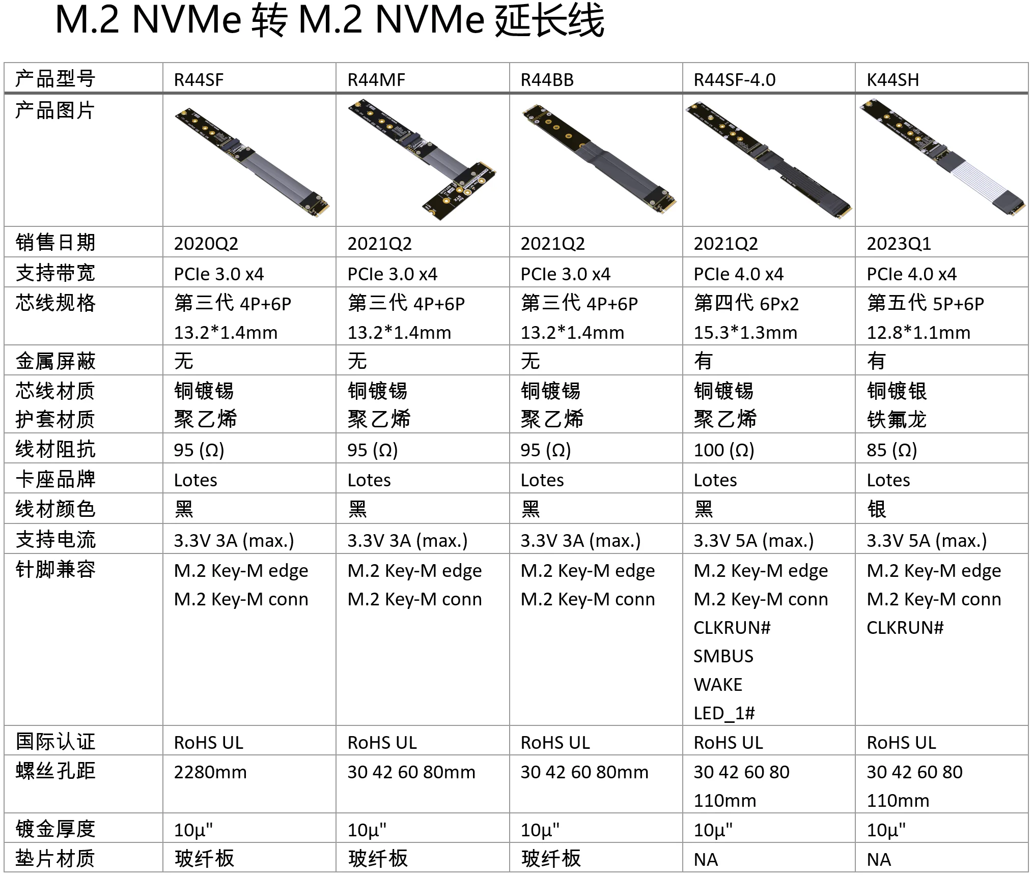 ModeloIlustrarAncho de bandaK44SFM. 2 cables de extensión NVMe a M.2 NVMe compatibles con SSD de tamaño 2280PCIe 4,0x4K44SHM. 2 cables de extensión NVMe a M.2 NVMe compatibles con SSD de tamaño 22110PCIe 4,0x4